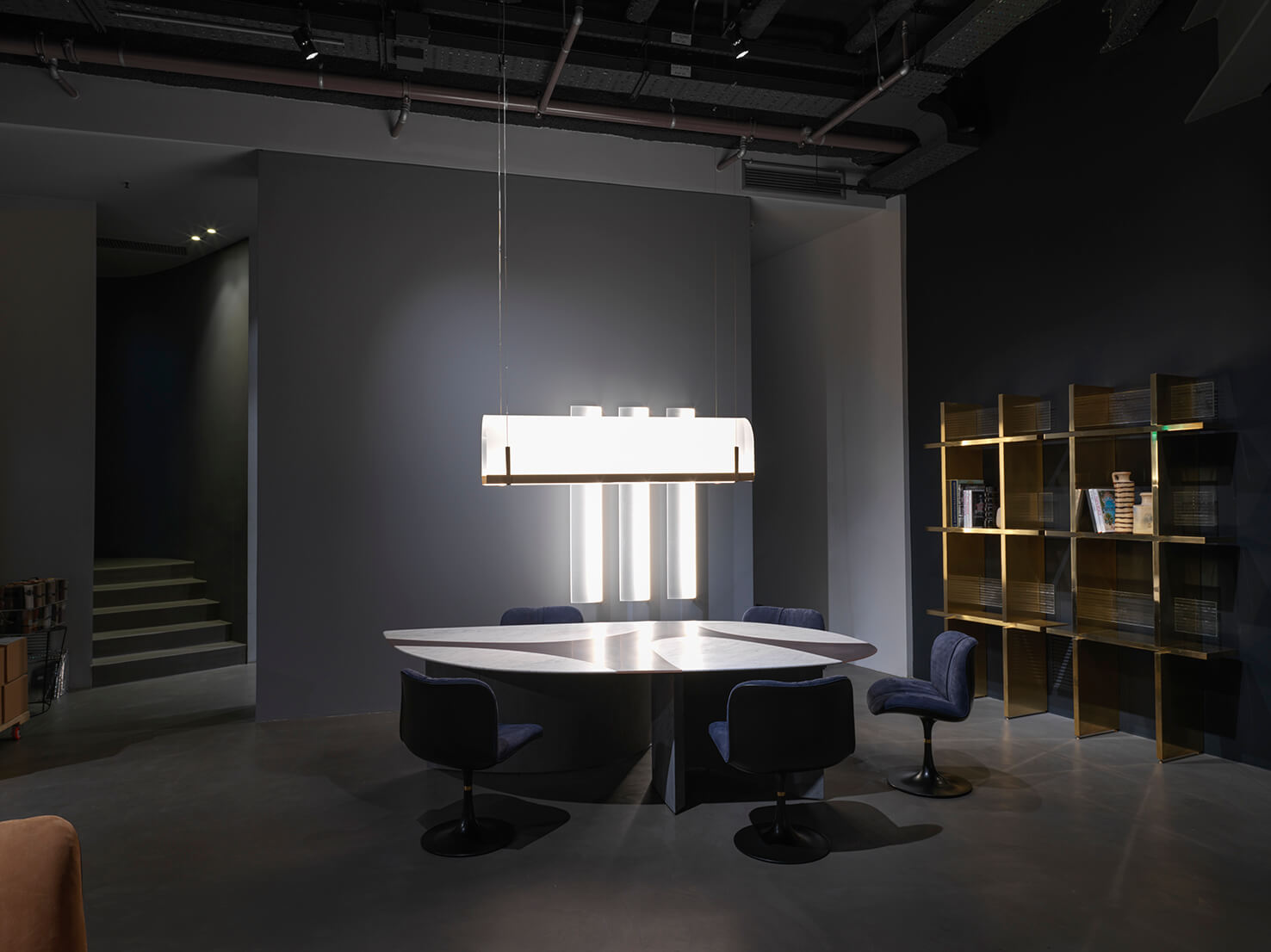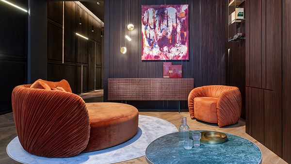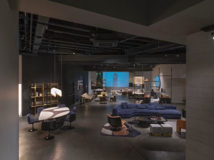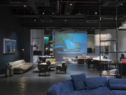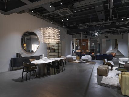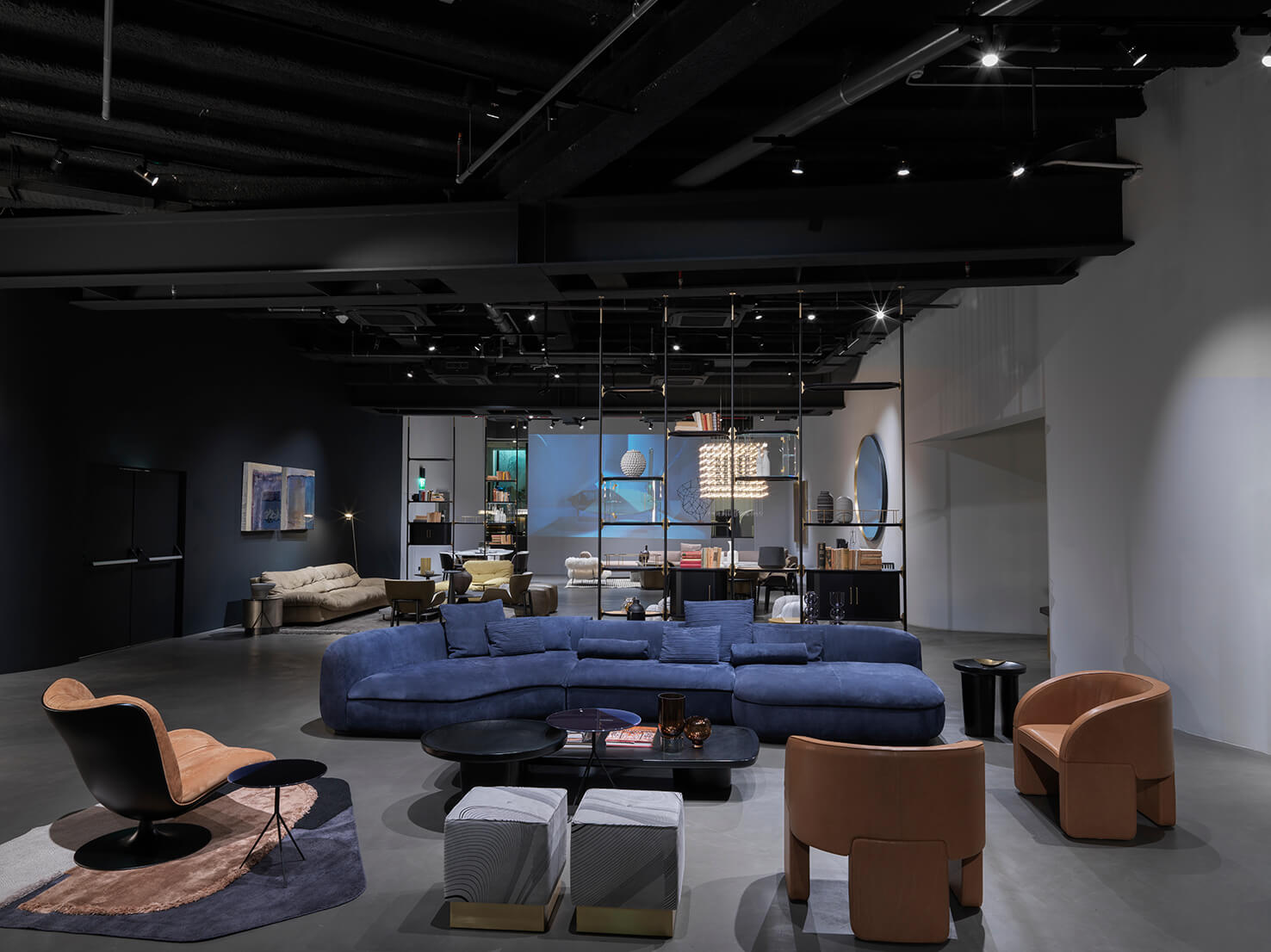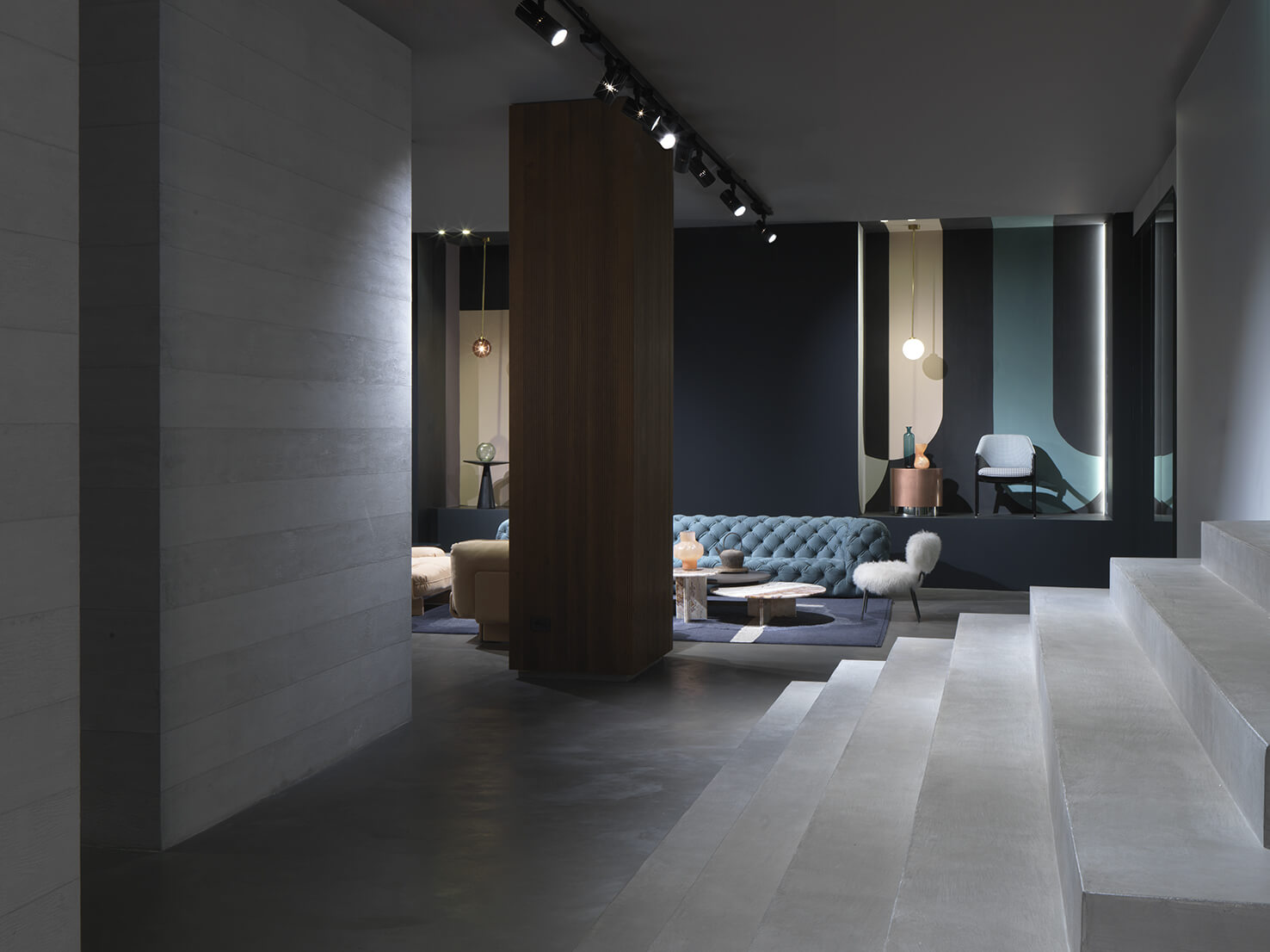 Located at the center of Made in Italy design, the Salvioni Milano Baxter Cinema showroom has played a prominent role, completely revisiting its look and colors in a display of the new collections. In the new set up there are many proposals for every room of the house, from the living area to the dining room, without neglecting the more intimate sleeping area.