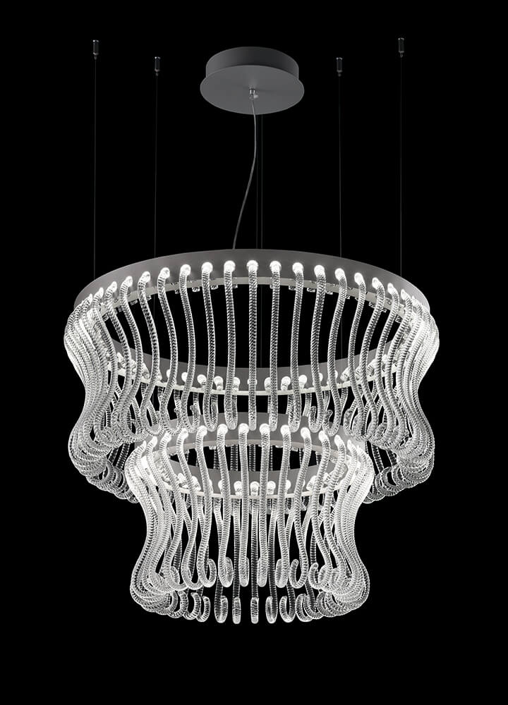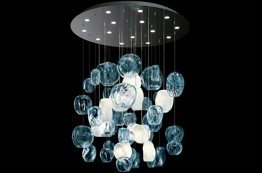 Today, the production of Barovier and Toso is concentrated entirely in the lighting sector. Primarily through its splendid and very rich chandeliers, such as the Taif model created for the sovereign of Saudi Arabia, combining Venetian and French styles, but also applique lamps wall with strong decorative values, fine table lamps, elegant floor lamps, pendant lamps and ceiling lamps.