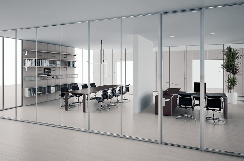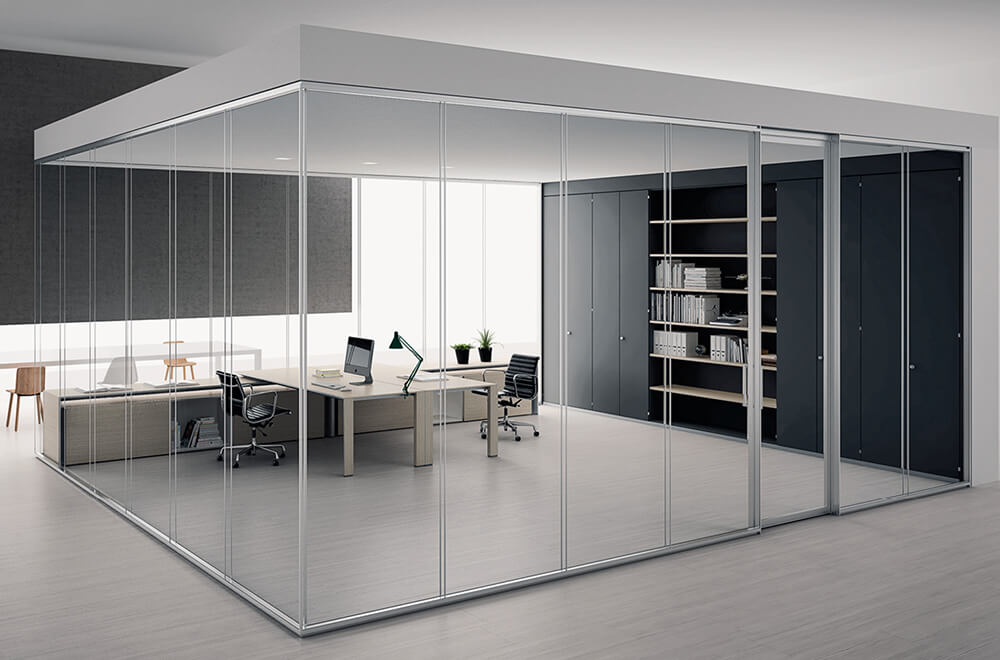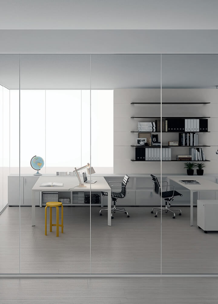 The Citterio catalog contains various types of partition walls, such as the traditional Basic and Sealed models, but also solutions for specific and sectoral needs such as the complete CSS system of acoustic insulation, movable walls, sliding doors and everything needed to functionally distribute large open space.
