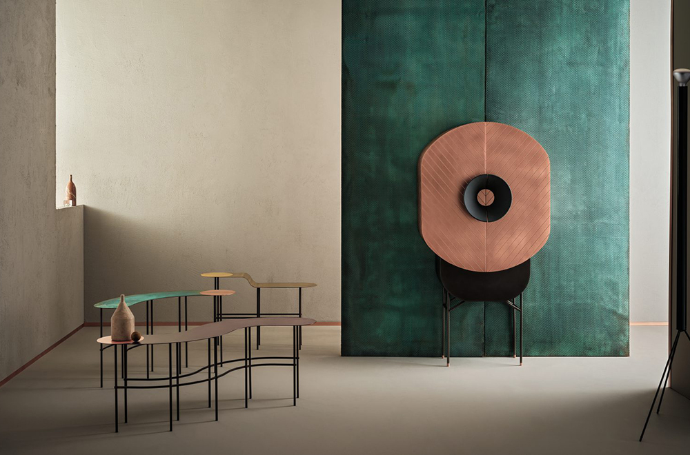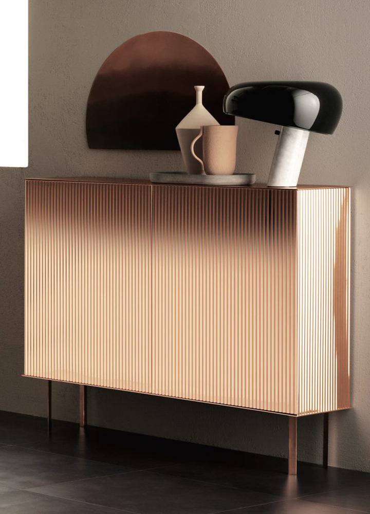 De Castelli has its headquarters in the Trevisan province and has its roots in the tradition of family expert from generations in the manufacturing of metal. From the brass to the copper, from the iron to the steel: every materials processed by De Castelli manage to assume a new and never common guise without equals on the market, that gives better value the respective characteristics. The material is followed by the shape, with collections of surprising furniture such as the sideboard Yoroi of Alessandro Masturzo and the library Existence of Michele De Lucchi.
