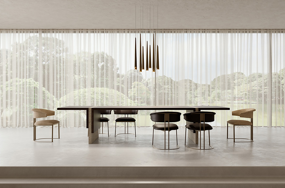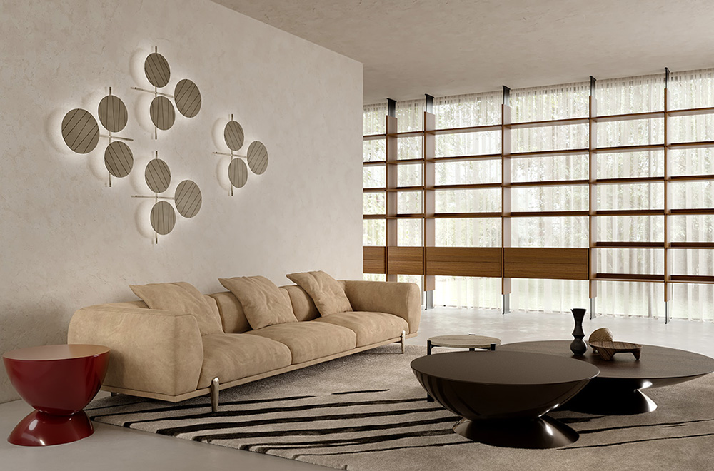 Even the Emmemobili tables have a varied and never banal look, with products such as the eclectic Evo table and the solid Ufo table, both designed by Ferruccio Laviani. The selection of bookcases proposed by the brand is also very interesting, such as the Rosa model by Evgenij Poliantsev. The great experience in wood processing is also put to use in the construction of numerous lines of boiserie with always different effects.