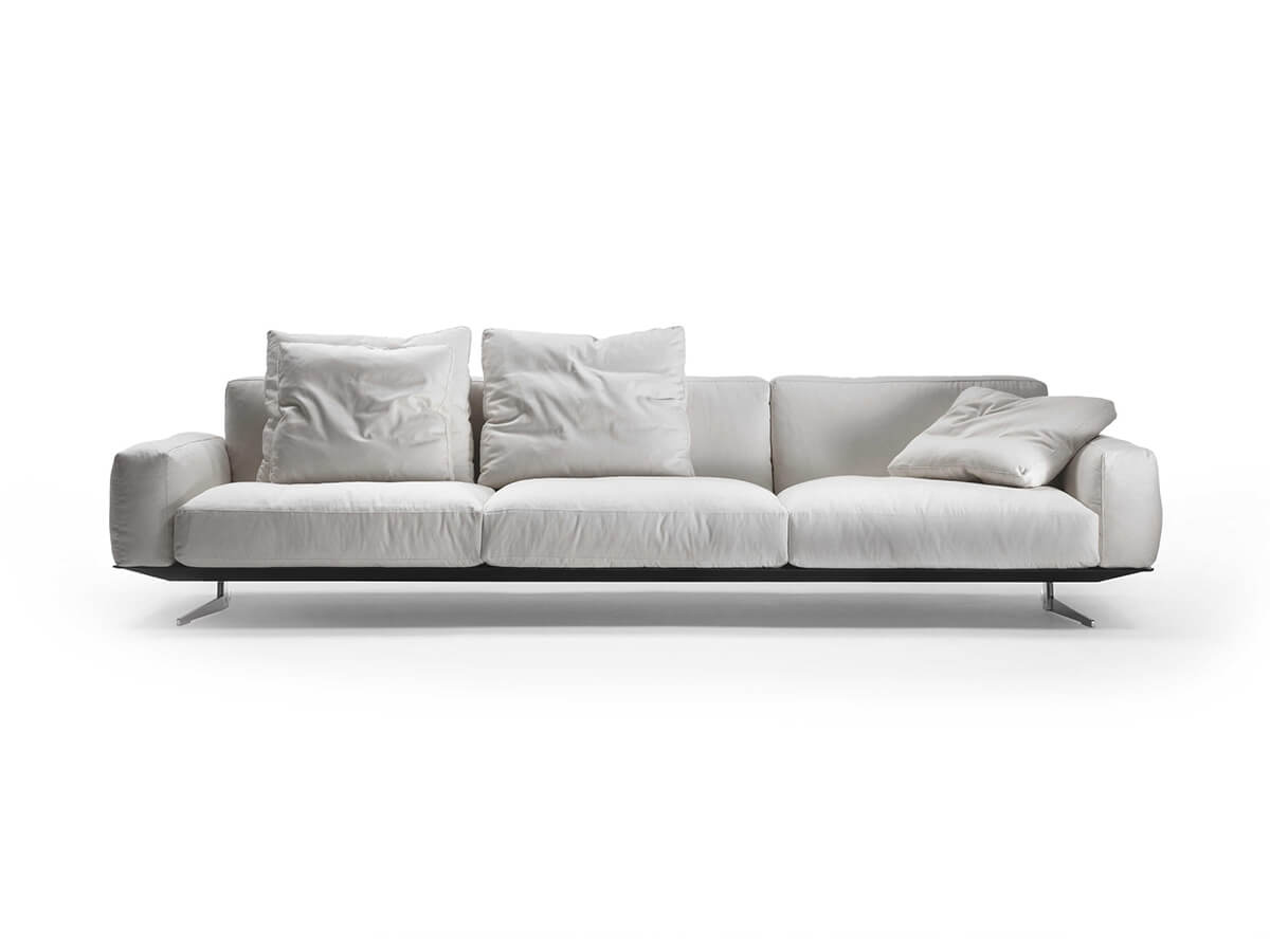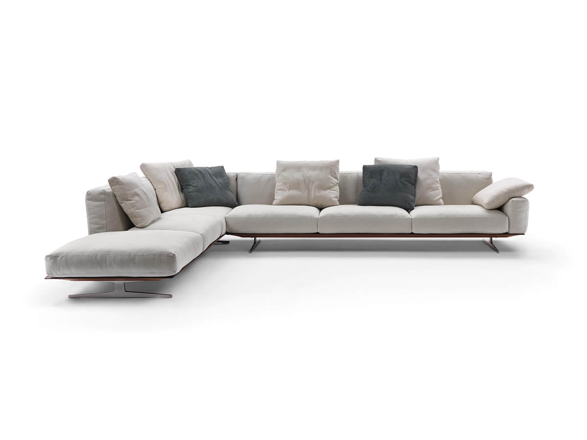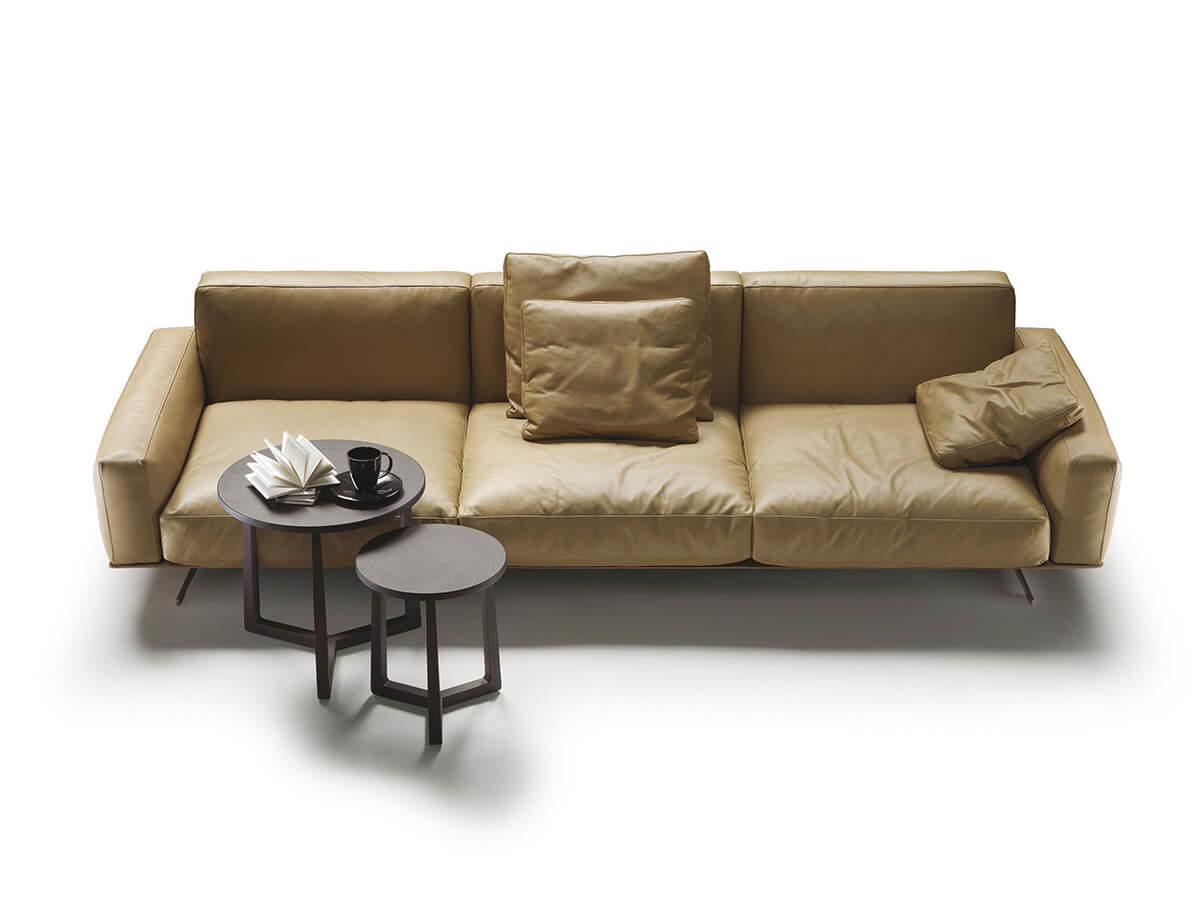 Sofas and armchairs are the core business of Flexform production. Marked by a sober elegance, these products embody the utmost expression of the high-end excellence of the Made in Italy design. Projected with the aim to give a complete comfort experience, Flexform collections differ from the other brand for the use of precious materials and fabrics, leather and finishes, accompanied by color palettes ranging from warm gray to neutral ivory and sand tones.