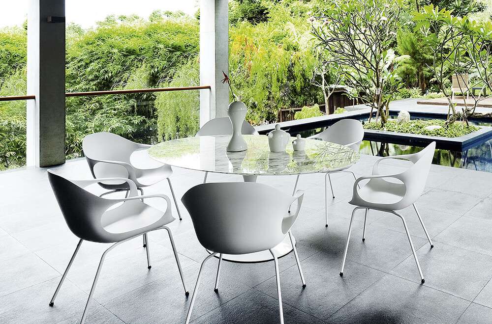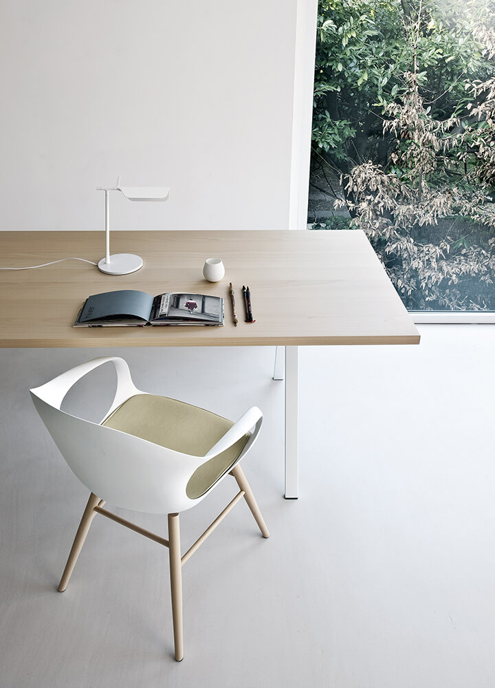 Among the tables, often available in the extendable version or in special finishes that make them suitable for outdoor use, we note the Thin-k series by Luciano Bertoncini, characterized by the incredible subtlety of the top. Also important are the Monica’s round table Oops Graffeo and the Nori table by Bartoli Design, convertible into a desk version thanks to the insertion of a cable hole.