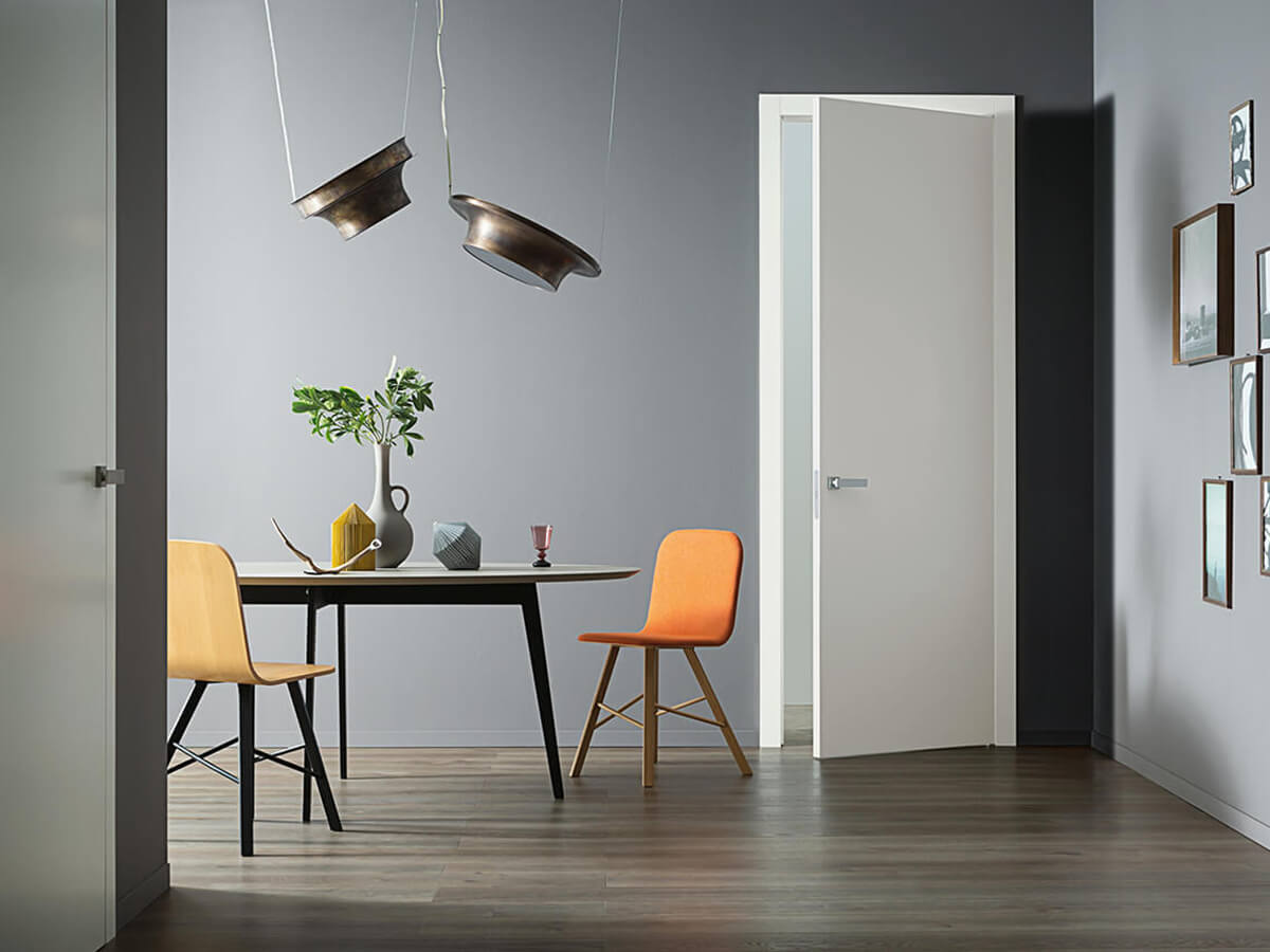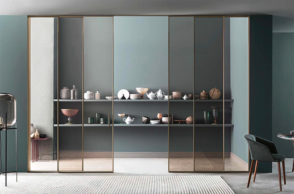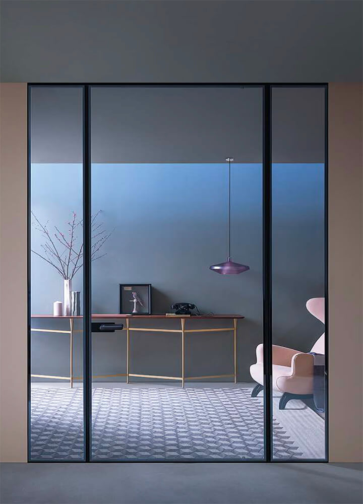 In the field of internal flush-to-wall doors, Lualdi proposes the tried-and-tested Rasomuro system, in its many stylistic variants, which makes it possible to optimize the reduced spaces of the apartments. Similar results can be achieved with external wall doors, such as the Outline model by Erik Morvan. Another fundamental type offered by Lualdi is the internal sliding doors or sliding windows, like the Shoin system.
