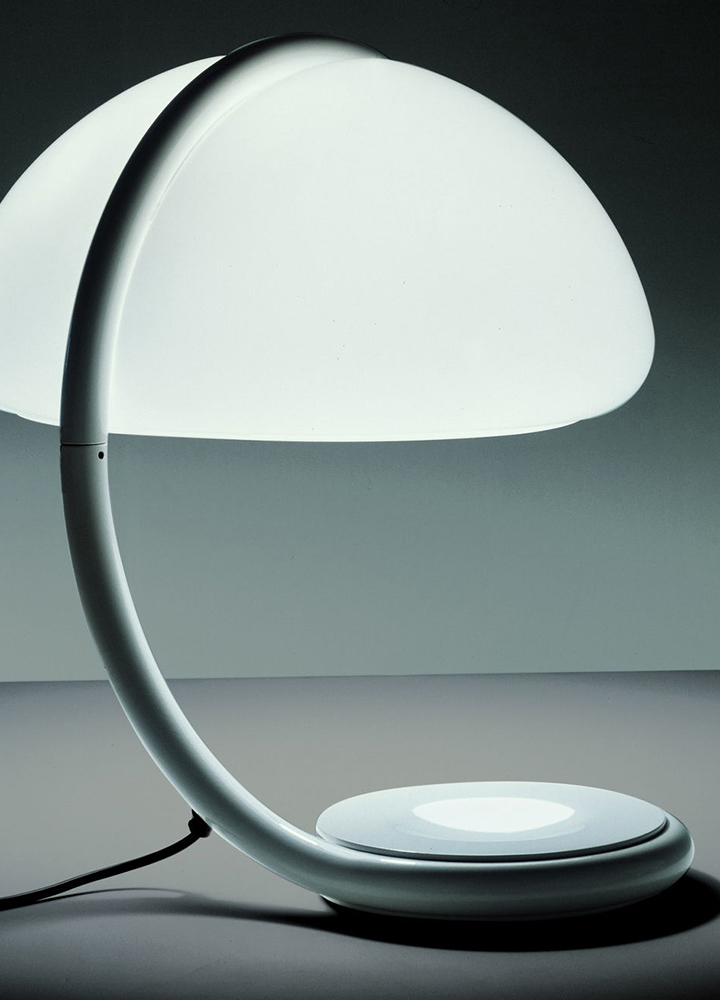 Thanks to his creations for residential projects, Martinelli becomes famous, with table lamps such as the Elmetto model, ceiling lights such as the Bolla model that stand out among the design symbols of the 60s and 70s. Among the Martinelli Luce suspension lamps stick out the playful Le Rondini lamp from the 1980s, the poetic Nuvole Vagabonde chandelier and the more recent Lunaop lamp.