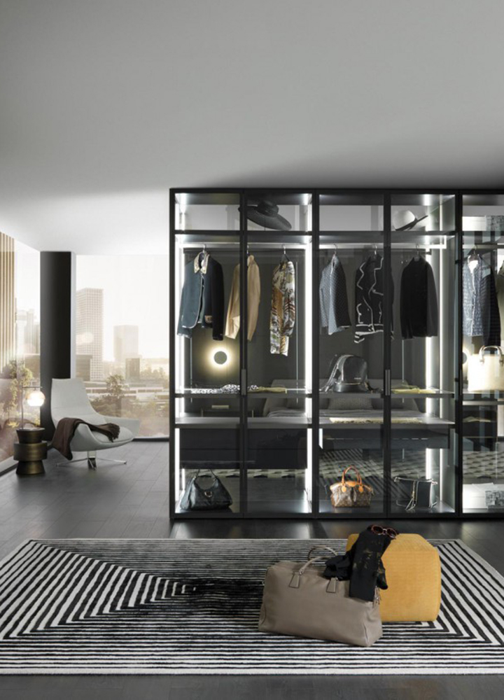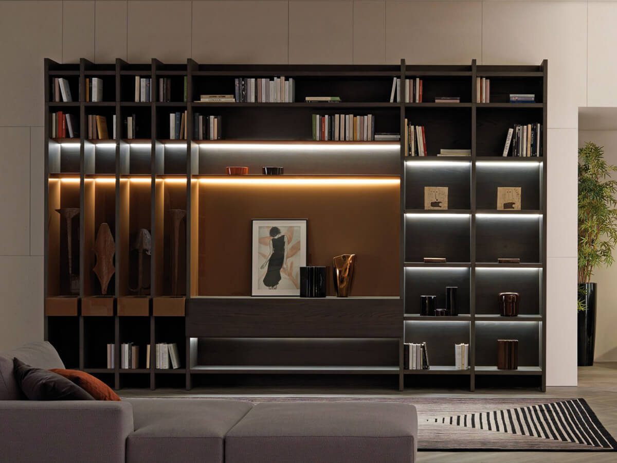 The MisuraEmme catalog ranges in all the different rooms of the house: from cabinets of all kind – hinged wardrobes, sliding wardrobes, walk-in wardrobes – to bookcases, such as the versatile Tao system or the innovative Crossing with suspended shelves. For the sleeping area there are numerous bed models, including the Sumo model by Mauro Lipparini or the Margareth bed by Marelli & Molteni, flanked by bedside tables and dressers.