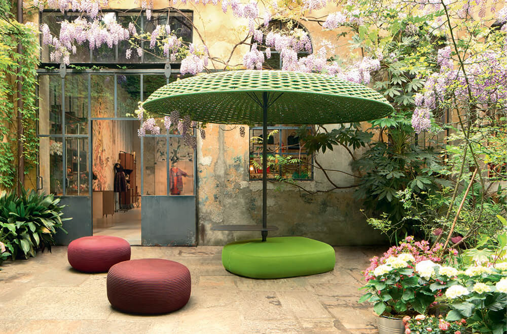 The company, founded in 1994, has been dedicated since 2000 to furnitures and outdoor structures in all their forms: sofas, armchairs, chaise longues, tables, chairs, poufs, umbrellas and shady structures of different nature. In this sector where the needs of the customers are always particolar and personalized, Paola Lenti immediately proved to be an avant-garde industry, patenting exclusive yarns, resistant to atmospheric agents, UV rays, sea water and swimming pools.