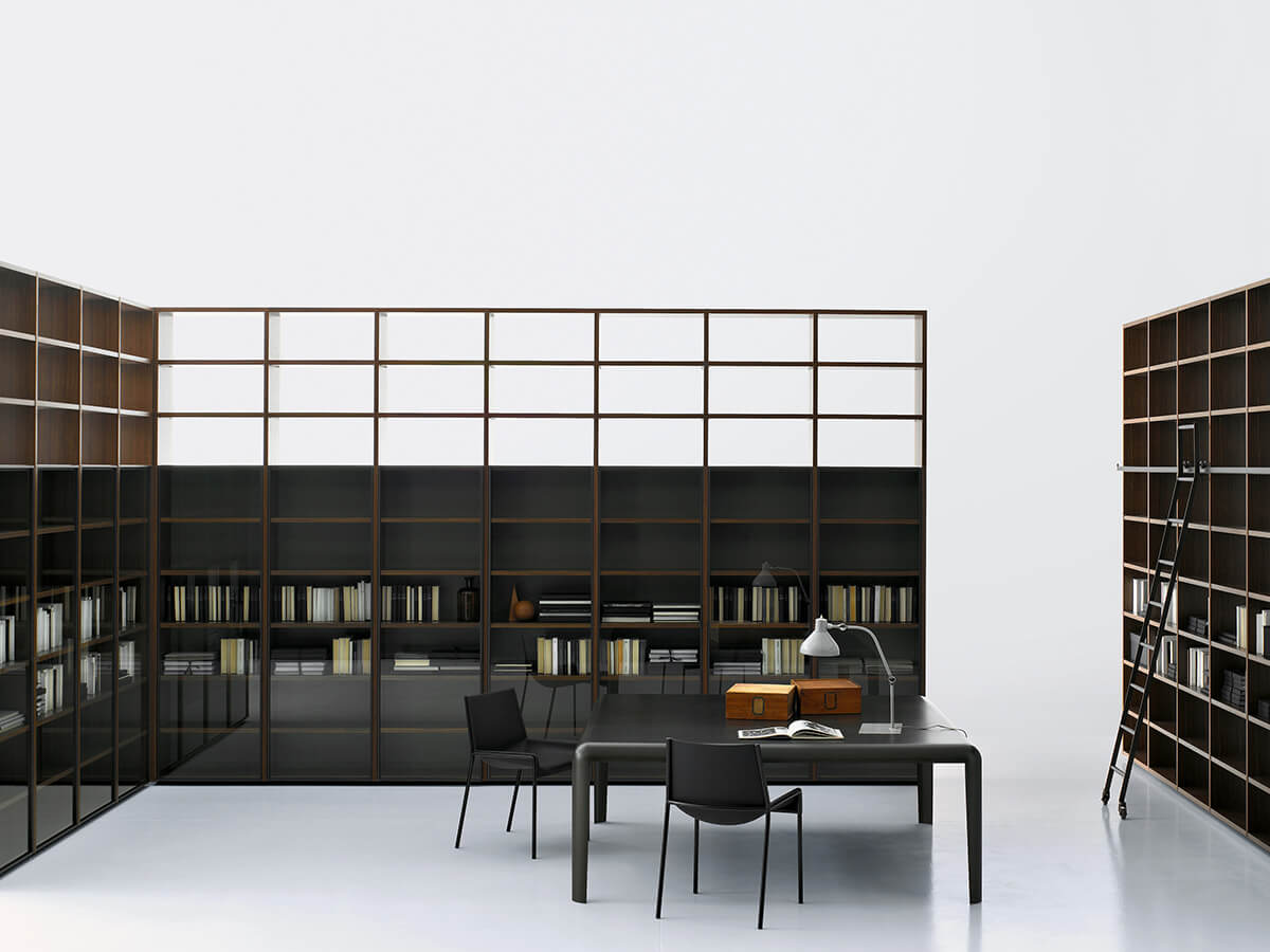 The essential language, the simplification of sign, geometries and shapes are a constant focus point in the research of Porro style that guarantees high quality and durability of the products over time. Porro offers bookcases, containers, chairs, complements and accessories for the living area. Among the wall systems, the System and Modern models offer numerous configurations and variants able to adapt to any need. Very important is the collection of tables, among which the Metallico model by Piero Lissoni stands out.