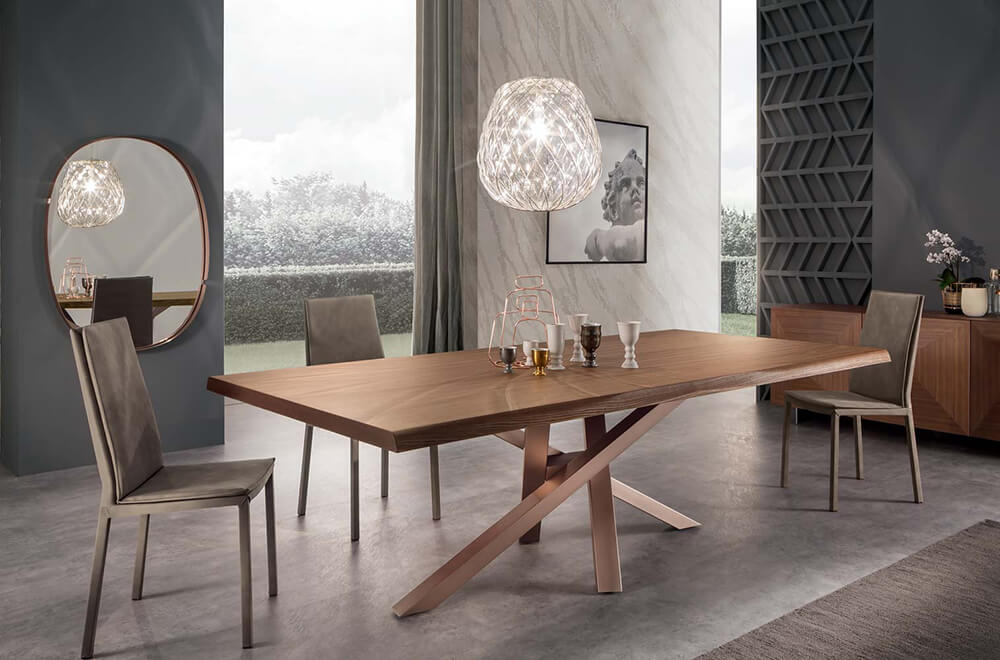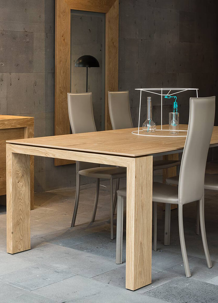Nomen omen, in the Riflessi collection you cannot miss a varied line of handmade and unique mirrors, like the Mito and Trapezio models. Another strong point of the brand are the consoles, fixed or extendable, ideal to customize and make the entrance of a house more functional: in this sense the P300 extendable console, with its small footprint, is able to transform with a few simple steps in a large dining table.