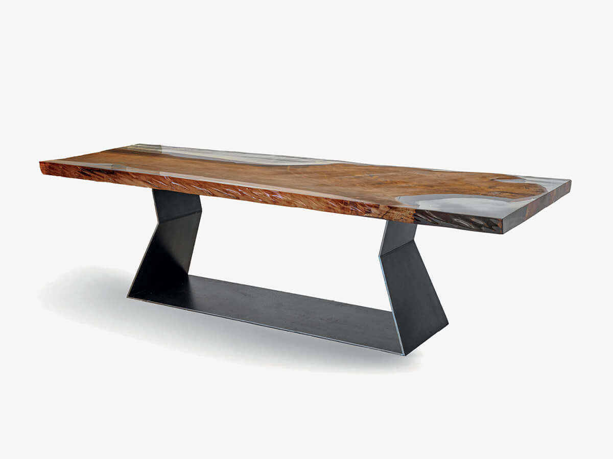 Unique pieces are also the Earth tables, created in collaboration with the architect Renzo Piano, and the Kauri Beam table where the naturalness of the wood blends with the transparency of the natural resin in order to give life to an evocative light and shade effetc. Finally, the Pangea model, designed by the architect De Lucchi for Expo 2015, signed a great success. In the Authentic Living collection created in collaboration with Lamborghini, the absolute skill in the use of wood adds elegant combinations of leather and hide leather.