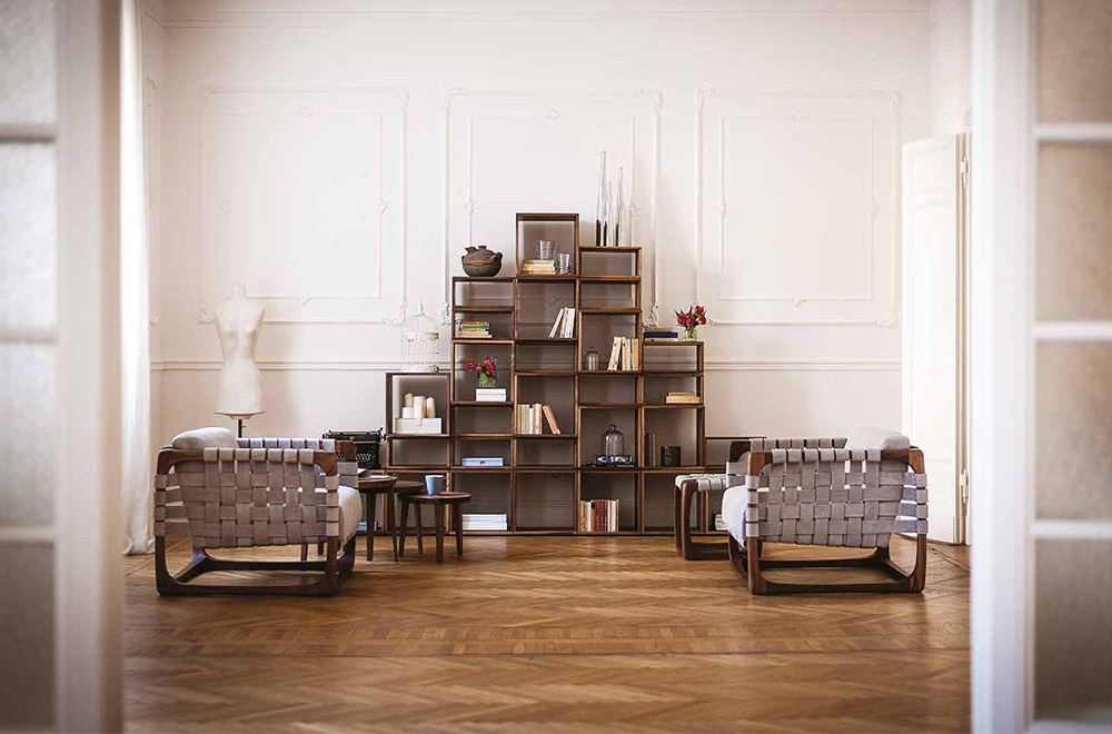 Riva 1920 is also able to offer many elegant models of modular bookcases in solid wood, completely customizable. To name but a few, the Freedom or the Lignea Tower by Michele de Lucchi, made from a single block of cedar, or the multi-layered solid wood sideboards like the Rialto by Giuliano Cappelletti. Each piece is signed by the unrepeatable signature of the natural wood able to ensure the unicity of Riva1920 brand.