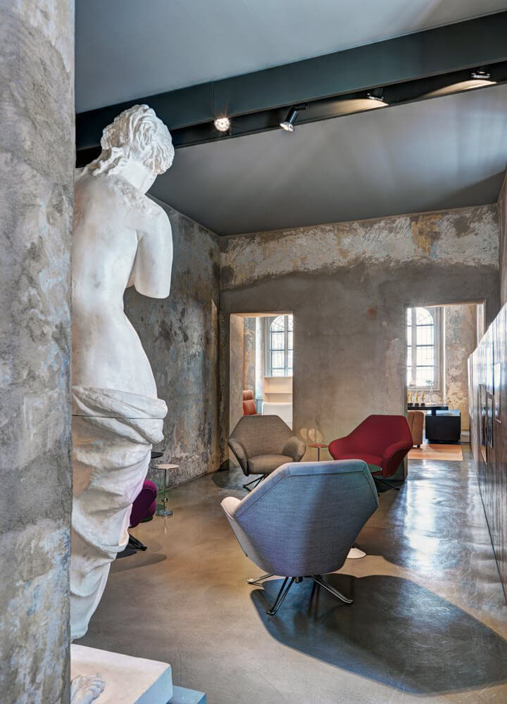 The furniture of public spaces is a field in which Tecno continues today to invest, boasting many prestigious projects such as the European Parliament in Brussels in 1992 or the remake of the British Museum in London. From 2010, the leading of the company belongs to Giuliano Mosconi, historic manager of the Poltrona Frau group, who inaugurated the new headquarters of Mariano Comense and oversaw the re-launch at the highest international levels.
