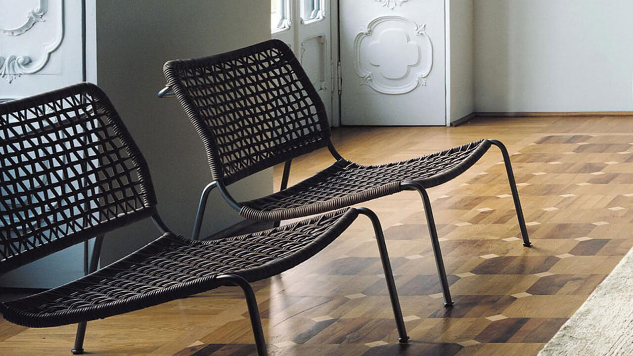 Its airy lightness evokes summer atmospheres, and for this reason an outdoor version with PVC weave has also been created, ideal for being positioned by the pool. There is also the Frog Lounge variant, with an elongated seat in the chaise longue version, available for both indoor and outdoor, and the elegant Carbon Frog version, which combines a carbon fibre structure with a polyester weave.