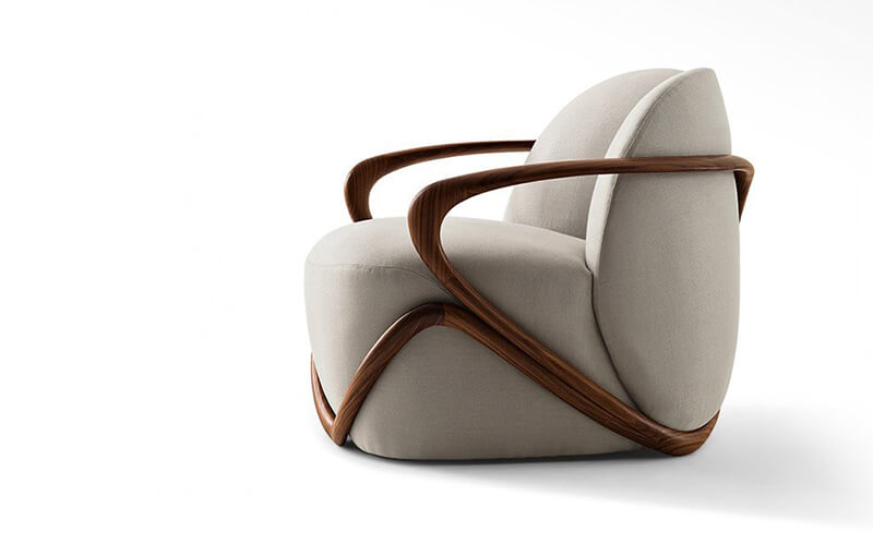 Protective and soft in its abundance, this armchair welcomes the body while keeping it comfortably anchored to the ground. Twenty pieces of solid canaletto walnut form the load-bearing structure of the armchair in which the padding in cold-foamed polyurethane covered with fiber seems to be held back by the very force of the wood compressing it. The cover, available in different variants, is not removable.With the Hug armchair, Giorgetti demonstrates not only an unparalleled craftsmanship quality, but also a superb design capacity that allows this model to give life to pieces destined to last over time.