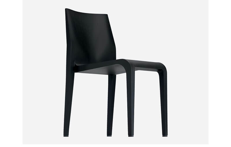 Thanks to its injection-molded polyurethane structure and veneered with white maple wood, Laleggera is light in name and in fact. The elegance of the model comply with the dematerialized aesthetics of the nineties. Once assembled, the structure can accommodate the veneer sheets of a double press-shaped coating. Using a procedure also used in the wings of gliders, the chair is “stuffed” and stiffened with injections of polyurethane resin in the lower part of the legs making it resistant. Laleggera is stackable, created with a frame capable of providing sufficient strength to support a person’s weight by itself while polyurethane prevents the risk of embarking with a technique borrowed from the construction of glider wings. The frame, in maple or solid ash, can be covered with various types of wood or finished with a layer of varnish with a wide color range.