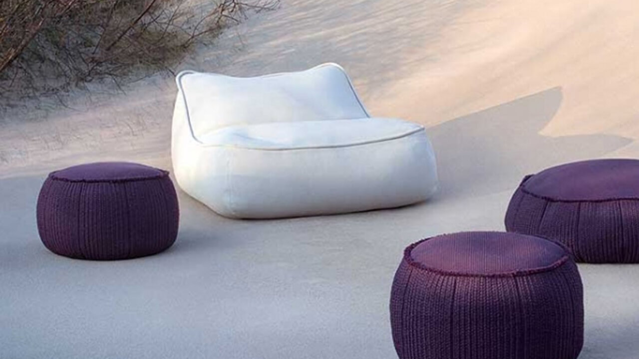 The most recognizable product of the series is the Float chaise longue, a sort of almost amorphous and unstructured sunbed that has the wide edges of the seam as its only decoration. The same principle gives life to the Float sofa, with an enlarged two-seater seat, and to the Float Easy Chair, on which to rest sitting instead of lying down. The Float Mini armchair represents a version in reduced proportions of the latter variant.