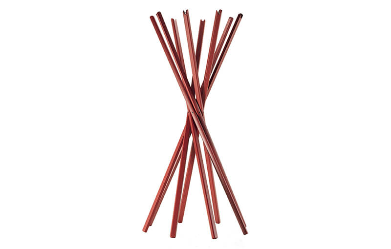The Sciangai clothes hanger by Zanotta, designed by the trio De Pas-D’Urbino-Lomazzi in 1973, is the development of a simple but ingenious idea: a bundle of wooden slats fixed by a central joint that open in a spiral, like if they were the sticks of the famous Chinese game to which the name refers with irony.