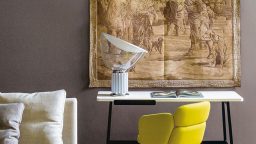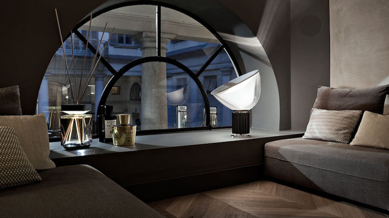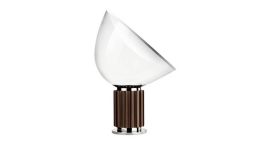 The Taccia lamp by Flos is one of the most famous lighting devices that have ever been designed. It was designed by Achille Castiglioni in collaboration with his brother Pier Giacomo and it is based on the principle of the indirect diffusion of light, very unusual for a table lamp.