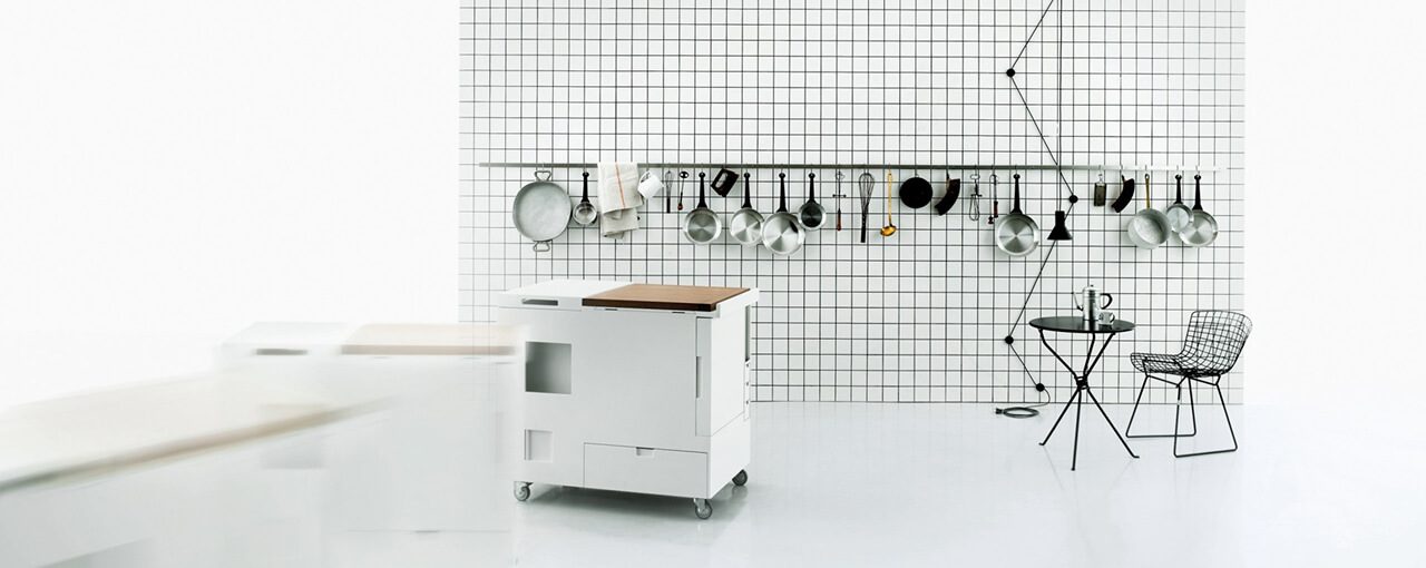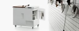 The Minikitchen by Boffi is a practical and compact kitchen on wheels, which in the reduced volume of about a cubic meter manages to contain everything necessary for cooking and setting for at least six people. A real “portable kitchen”, enclosed with an ingenious system inside a small cube that can be easily transported from one room to another.