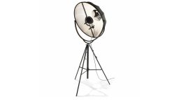 The base is inspired by the tripod of a camera, with its adjustable central leg and the rotating head. The folding lampshade can be rotated and tilted, allowing you to direct the light in any direction. Mariano Fortuny, also famous for his fair for fabrics and for his pleated silk dresses, paid particular attention to the textile covering of the lampshade.