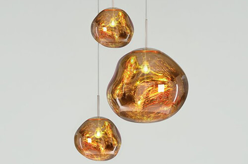 Melt was designed by Tom Dixon in 2014 in collaboration with the Swedish designer duo Front and it makes extensive use of cutting-edge technologies to obtain its peculiar luminous effect. The diffuser is made of a plastic polymer that takes the form of distorted spheres, with a distinctly organic shape that brings to mind images of melted glass or melting ice.