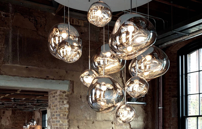 The Tom Dixon series of Melt lamps combine a highly suggestive shape, consisting of distorted spheres with an almost alien charm, with a skilful modulation of the light obtained through a process of partial metallization of the diffuser, which is so hyper reflective when the lamp is off, while when it is on it gives off translucent lighting similar to that of the sunlight reflected by the water, capable of creating an atmosphere of deep relaxation.
