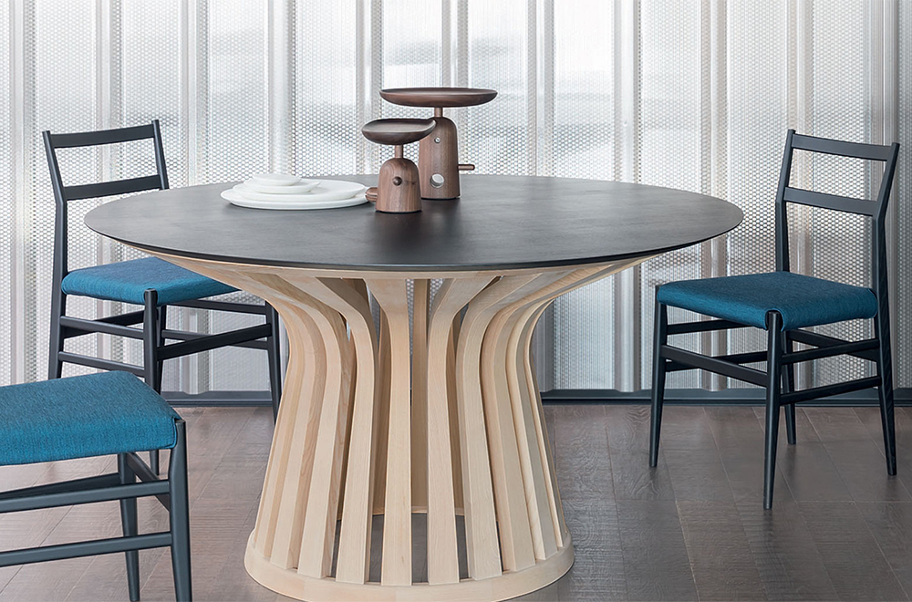 Compared to the Superleggera, characterized by slender legs with triangular section, Leggera has almost circular section legs and, thanks to its extreme strength and simplicity, has had a very high commercial distribution over the years.