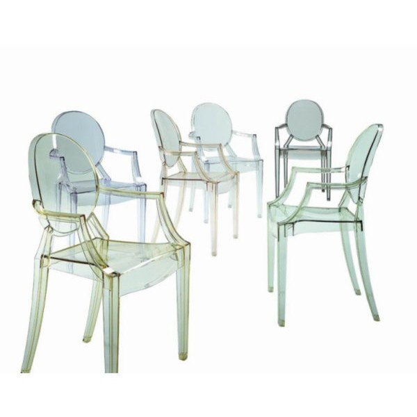 Eldest of this revolution, Louis Ghost is characterized by the comfortable polycarbonate seat, transparent and color inspired by Luigi XV’s design: the Baroque ideotype revisited to amaze, excite, fascinate. Despite its evanescent and crystalline appearance, the seat does not lack in resistance and offers a strong opposition to impact and weather.