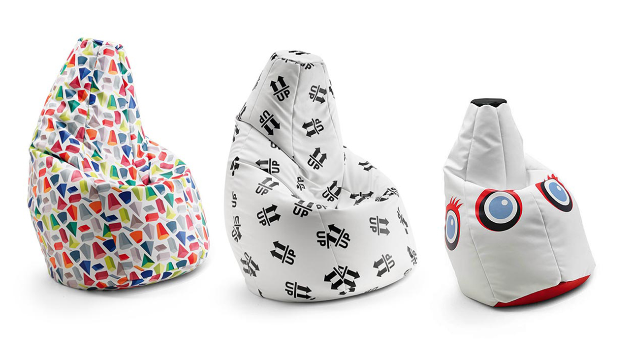 It presents itself with the simple appearance of a large plastic bag or a soft-shaped bean, filled for two-thirds of polystyrene balls. This structure allows total ergonomics: the entire surface of the armchair fits perfectly to the curves of the back, molding on its shapes like fresh snow. At rest, it appears as a a shapeless cumulus, an element of freedom and discontinuity in furnishings, which only in the act of sitting reveals features and proportions specially designed to simulate those of a human body.