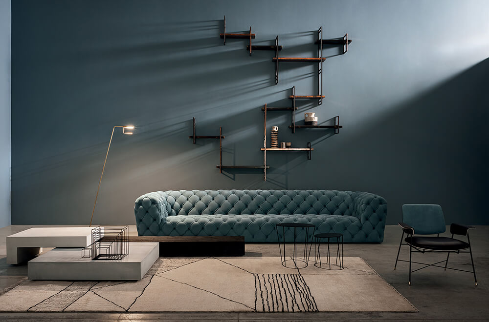 Chester Moon is one of the best known Baxter Mady in Italy sofas . Since 2009, the year of its release, Paola Navone’s work has gained international attention thanks to the clean and simple shape, inspired by the ancient models of the Chesterfield sofa of the late nineteenth century. The characteristic capitonné workmanship entirely handmade gives the entire structure the inimitable retro flavor capable of embracing old and new, in a perfect harmony of combinations.