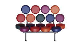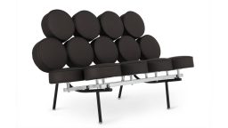 Therefore only 186 specimens were produced before temporarily stopping production, making it a highly sought-after collector’s item. It is re-proposed by Vitra in a version very faithful to the original of George Nelson, available in a fixed colour combination. Two sofas can be hooked through an intermediate extension element made up of six cushions, mounted on a frame that also has the function of connecting the two modules, thus creating potentially infinite compositions perfect for lobbies or other public spaces.
