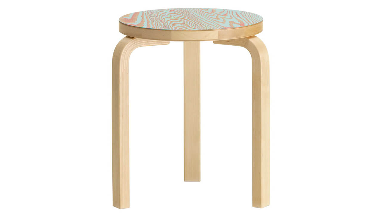 The wood used for the legs and for the circular seat is solid birch, a very light and pleasant to the touch essence of whose forests Finland is particularly rich. However, Artek offers several versions, such as a black or white lacquer or with a walnut effect. The seat can then be lacquered in many other different colours or covered in fabric, while maintaining the same proportions.
