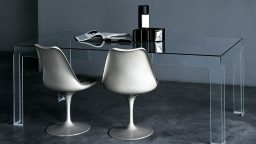 The Atlantis table by Glas Italia expresses a concept of simple and pure design, where the design excludes any abundance and useless pomp in order to exalt the purity of the forms to the maximum. Designed by the designer Lorenzo Arioso, the Atlantis collection consists of a series of tables and coffee tables made by gluing mm. 6 tempered, water jet cut and ground at 45 °. Versions in extralight transparent or glossy lacquered glass are also available.