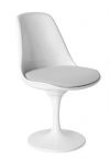 Tulip chair is characterized by the goblet shape resting on a single central pedestal. Saarinen worked for a long time on this chair, searching for both the beauty of the lines and the compactness of the materials: its original intent was to make it entirely in plastic, but the techology of the time did not allow such a workmanship. It was so splitted into two pieces, with the fiberglass body rotating on the aluminum base. The lines, soft and enveloping, are molded according to the curves of the human body and almost give the idea of an organic sculpture. The unprecedented appearance of the Tulip chair immediately had a great impact and still preserves the charm of an object from the future.