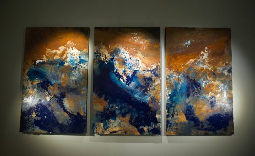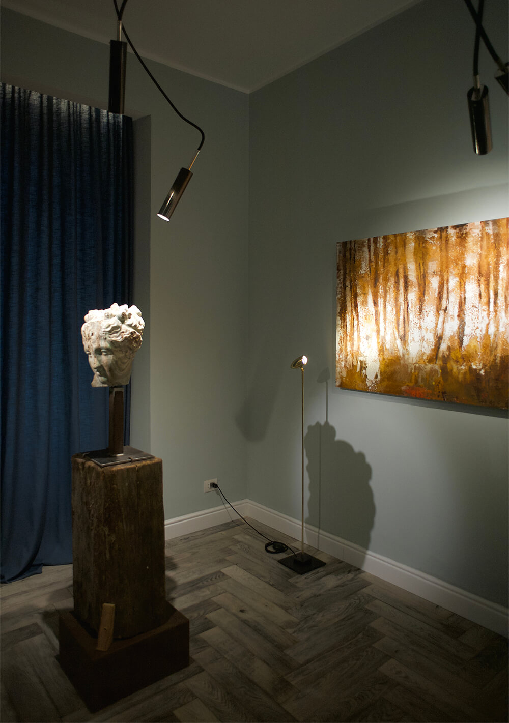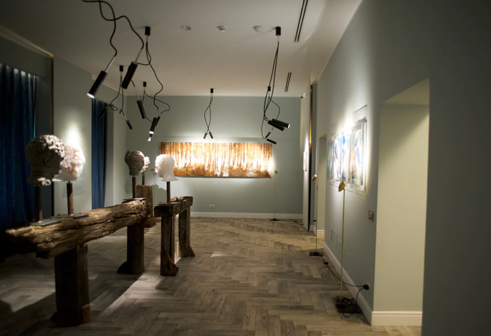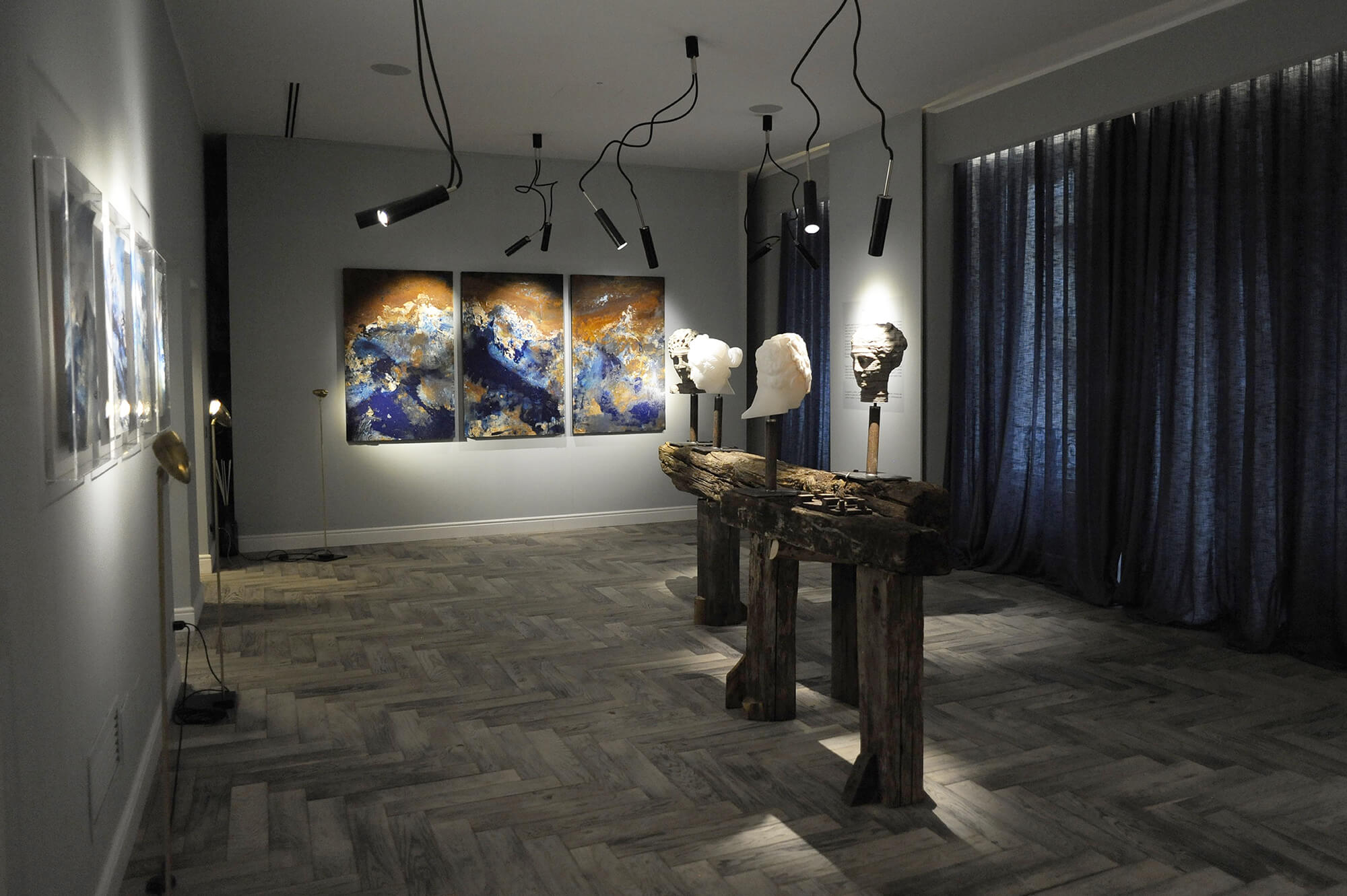 Starting from this concept, the two artists have collaborated creating a unique and surreal landscape, animated by busts and faces in stone alternated with abstract canvases and strongly emotional inspiration. The resulting environment is therefore defined with a perfect synchrony of opposites, whose attraction resides precisely in the different entity able to distinguish them.