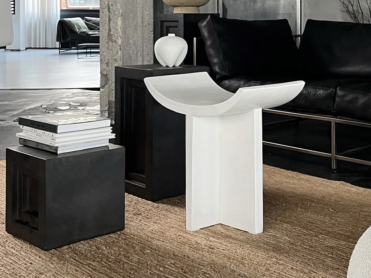 As beautiful as it is simple, Brutus embodies an aesthetic power that seems to reside in the brutalist architecture movement of the mid-20th century. The Brutus collection of the same name includes numerous other design pieces such as a dining chair, a lounge chair, a coffee table and of course this lightweight fiber cement stool. Seat and base are joined together to create movement and interconnection. The inspiration seems to come from Japanese wooden stools, known for their simple but strongly evocative shapes. Ideal for different rooms in the house, Brutus adapts well to even the most particular styles thanks to its unique appearance.