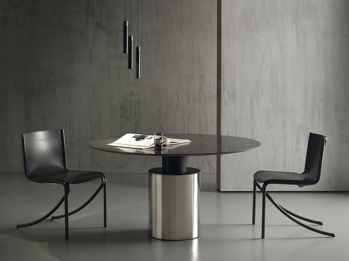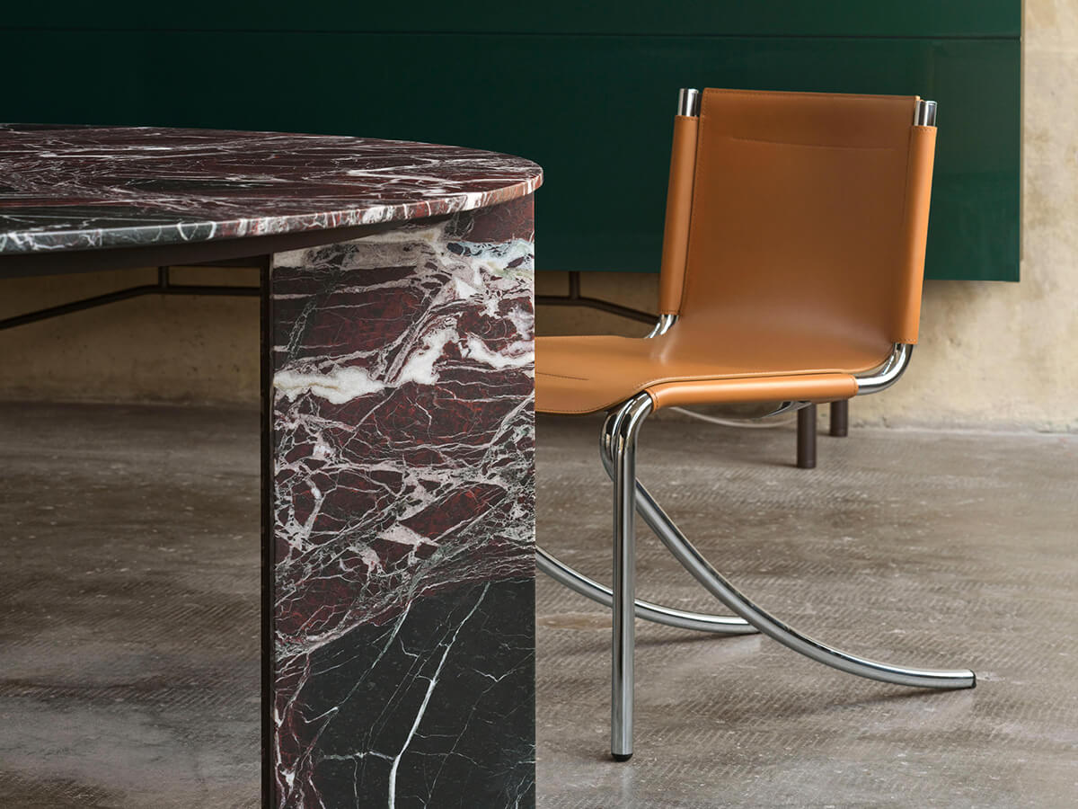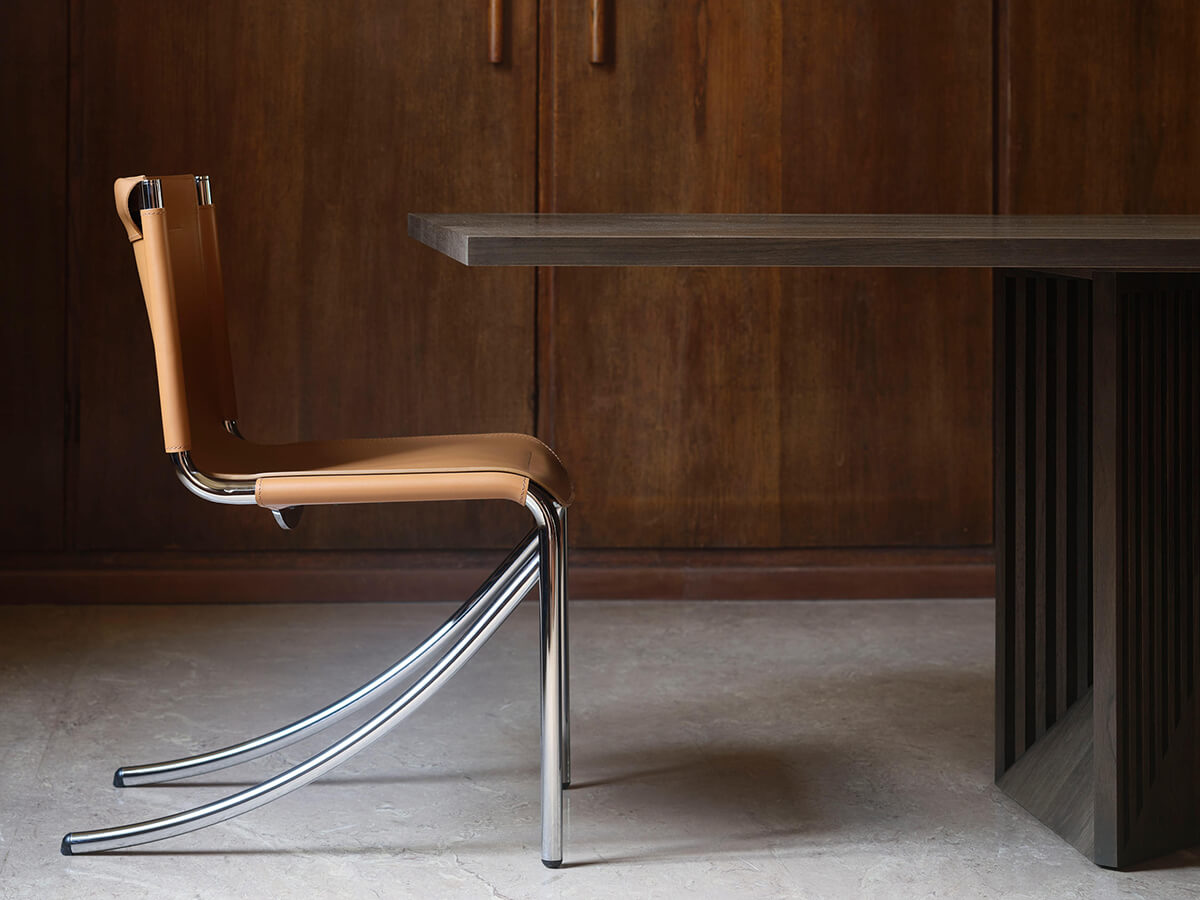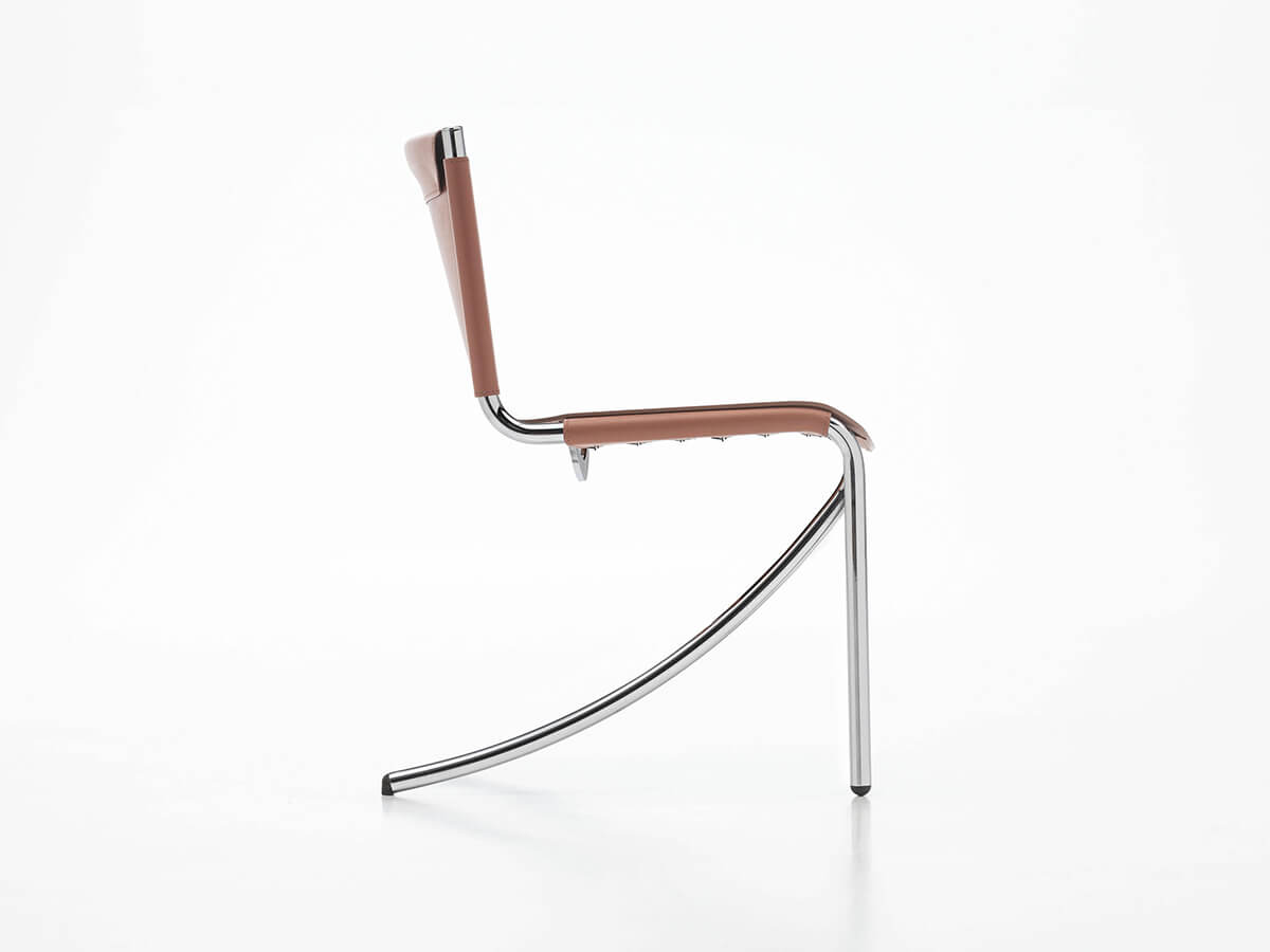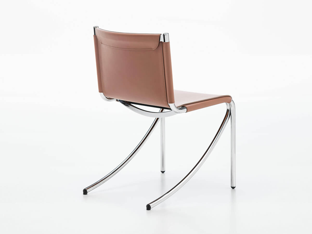 Elegance and simplicity merge into one of great design refinement with the Jot chair by Giotto Stoppino. Acerbis releases it on the market in 1976, transforming it since then into a real iconic piece of his style. The Jot chair has a chromed tubular structure with a particularly sinuous shape that places it well in the fashions and tastes of our time. The shiny metal integrates very well with the natural leather, giving it a sophisticated tone. The cantilevered style of Stoppino is particularly enhanced here, creating shapes that fit well both in common areas and in studios and waiting rooms.