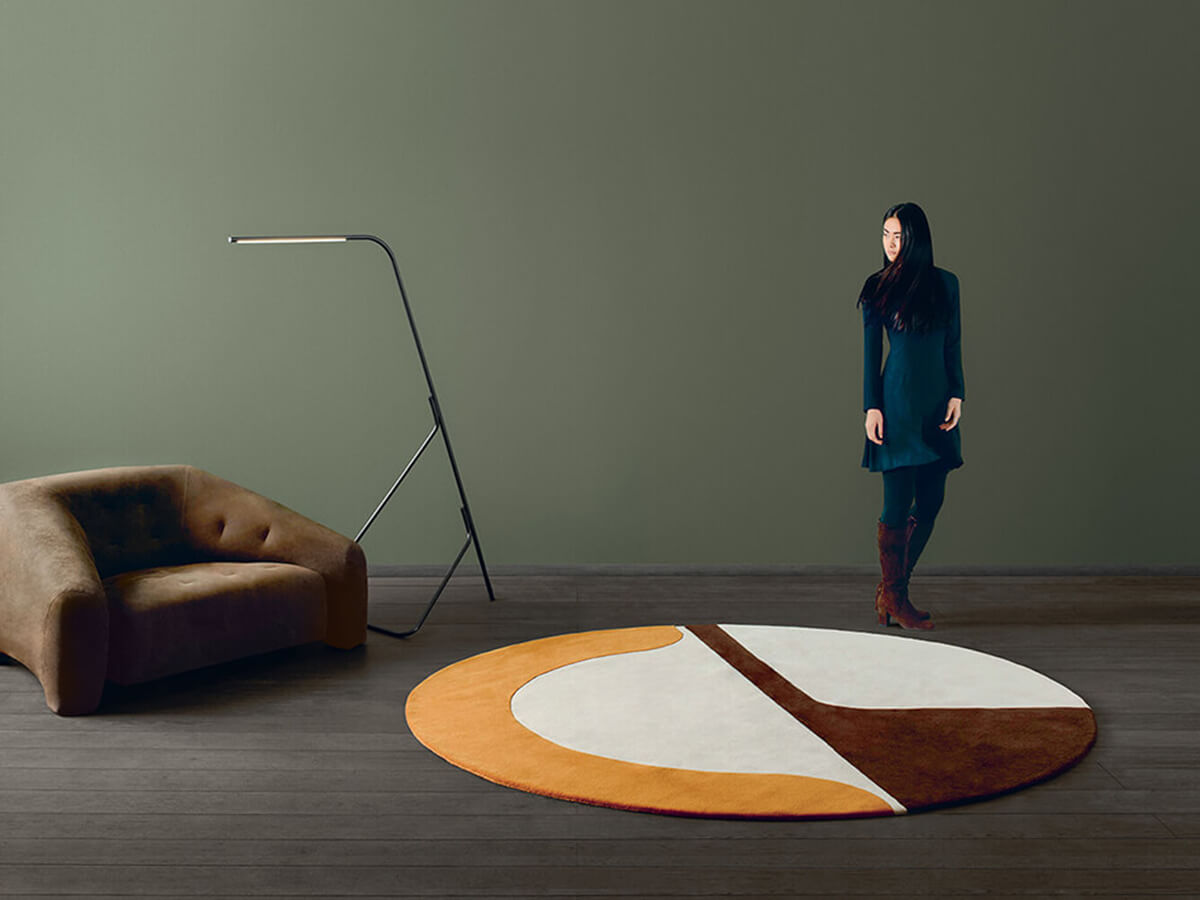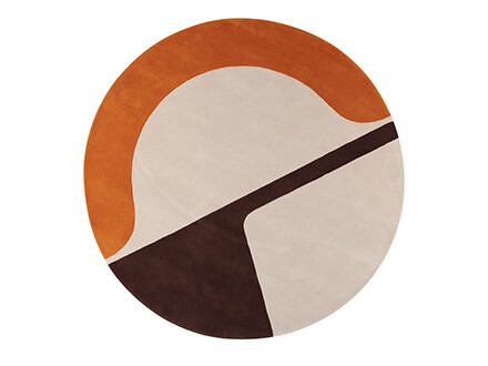 Joe Colombo and Amini have created a carpet whose shape seems to aspire to a subtle compromise between art, science and design; in fact, it recalls science-fiction iconography and landscapes of great inspiration here finely represented by the graphic sign present inside. The play and the supreme harmony of colors manage to create a rug that fits well within domestic spaces but which can still lend itself to more ambivalent positions in bedrooms and studios.