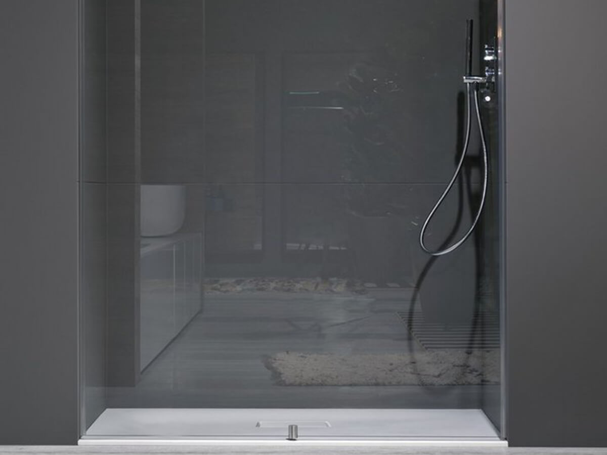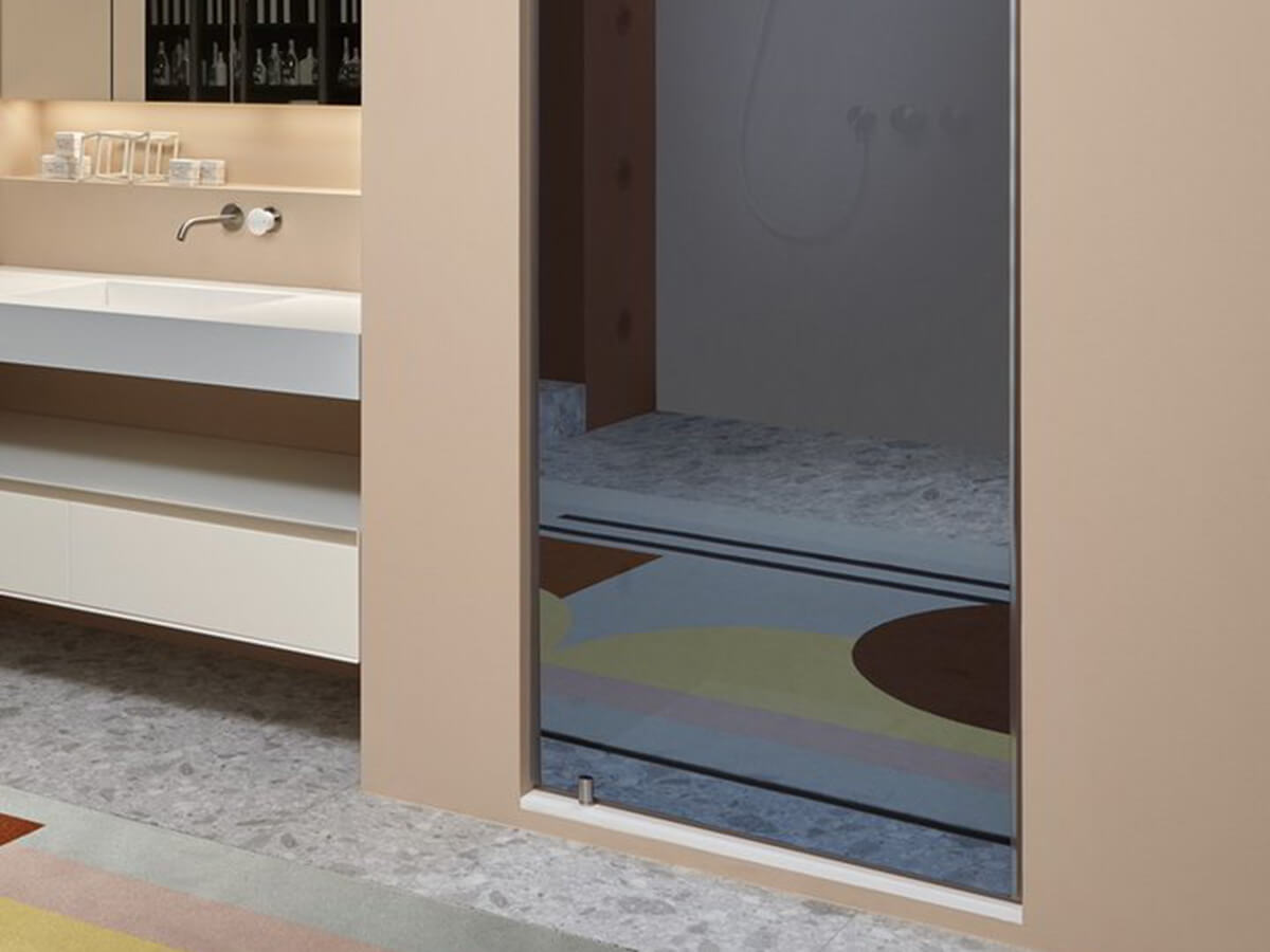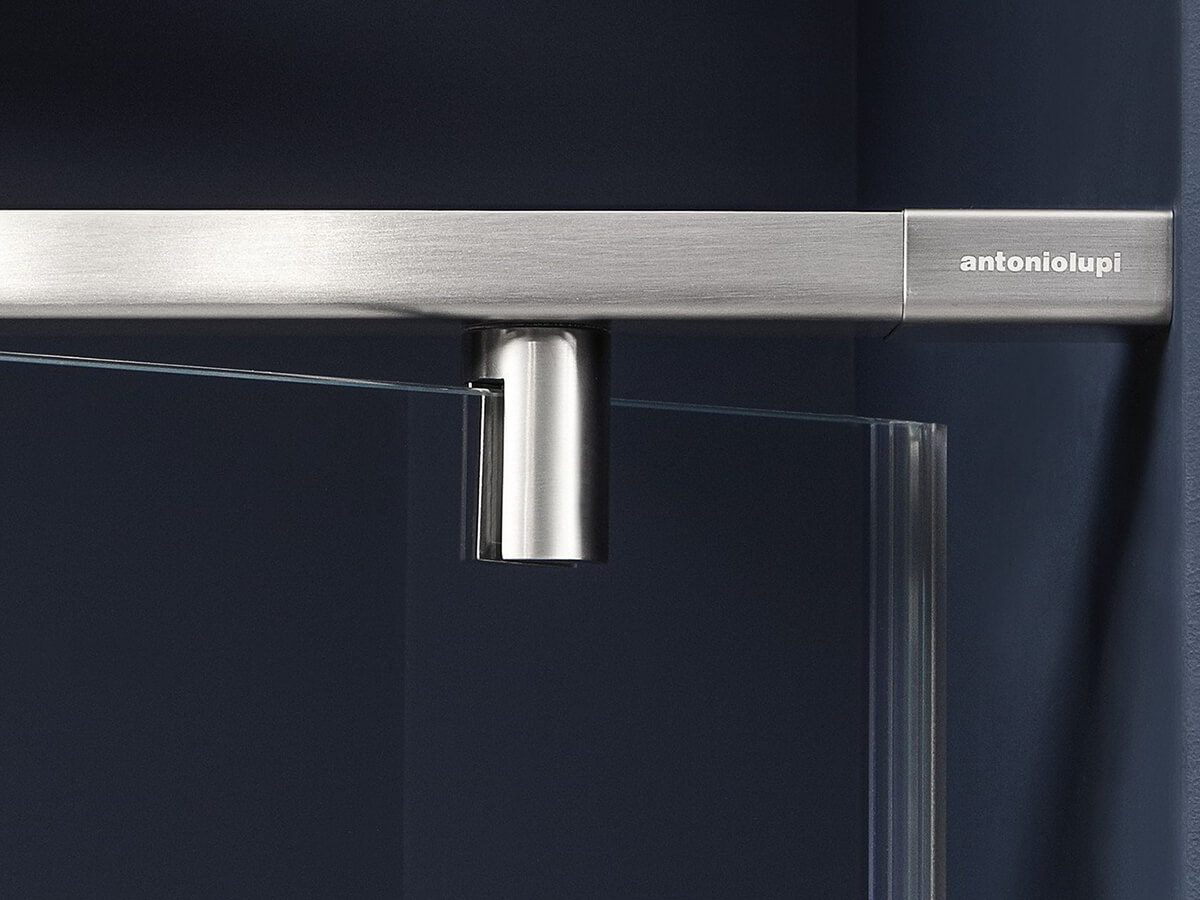 Essential and of great design versatility, the Bilico shower enclosure by Antoniolupi owes its name to the unusual mechanism chosen for opening the door, a pin that allows it to rotate widely and easily access the shower enclosure. Bilico is a shower that can be adapted to niches of any size, but can also be proposed in corner compositions. The door, also modular with other fixed glass walls, is supported by an overlying support crosspiece in AISI 304 stainless steel, to which the opening pin is fixed in a decentralized position. In compositions with large doors, the rotation of the door, on the other hand, takes place along a central axis.* Technical features: The glass of the Combi shower is available in different finishes: extra clear, etched, smoked, bronze and reflective smoked