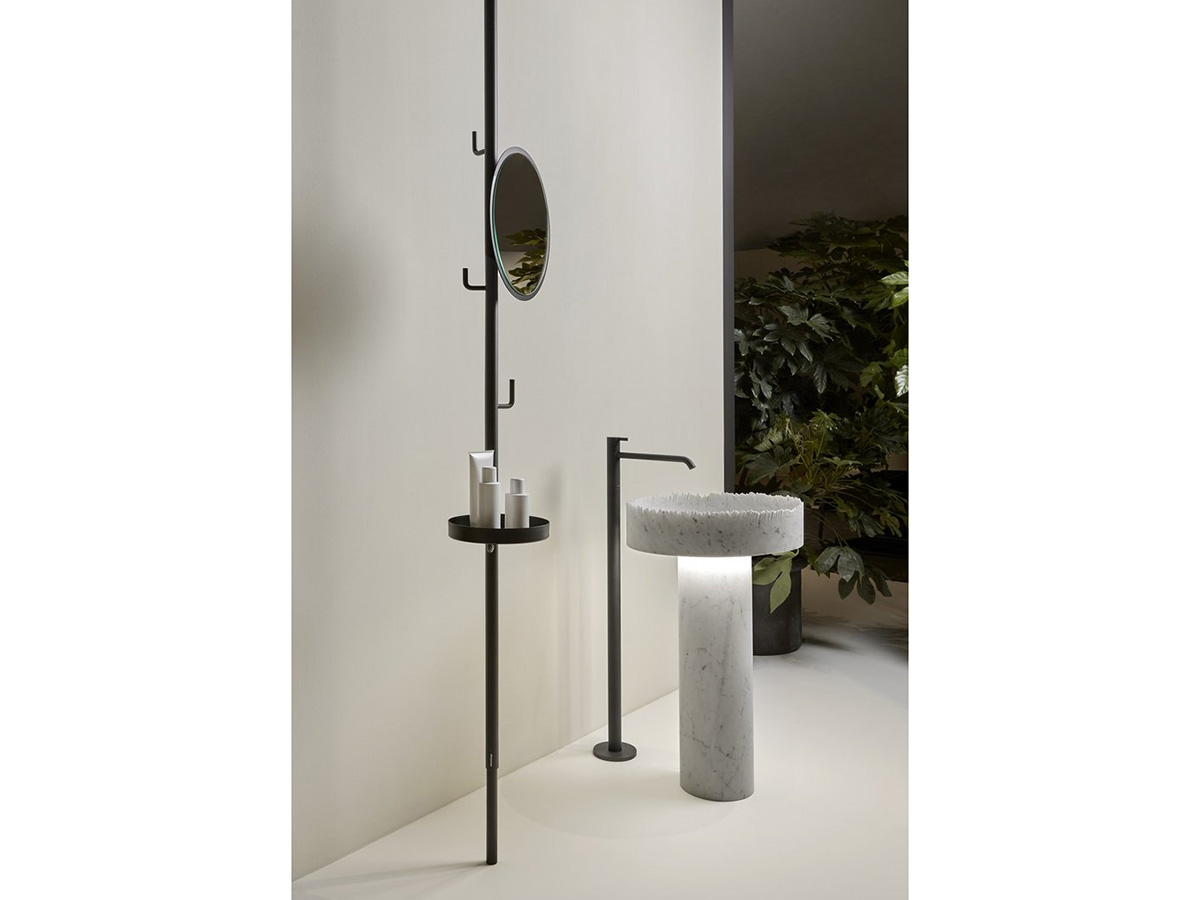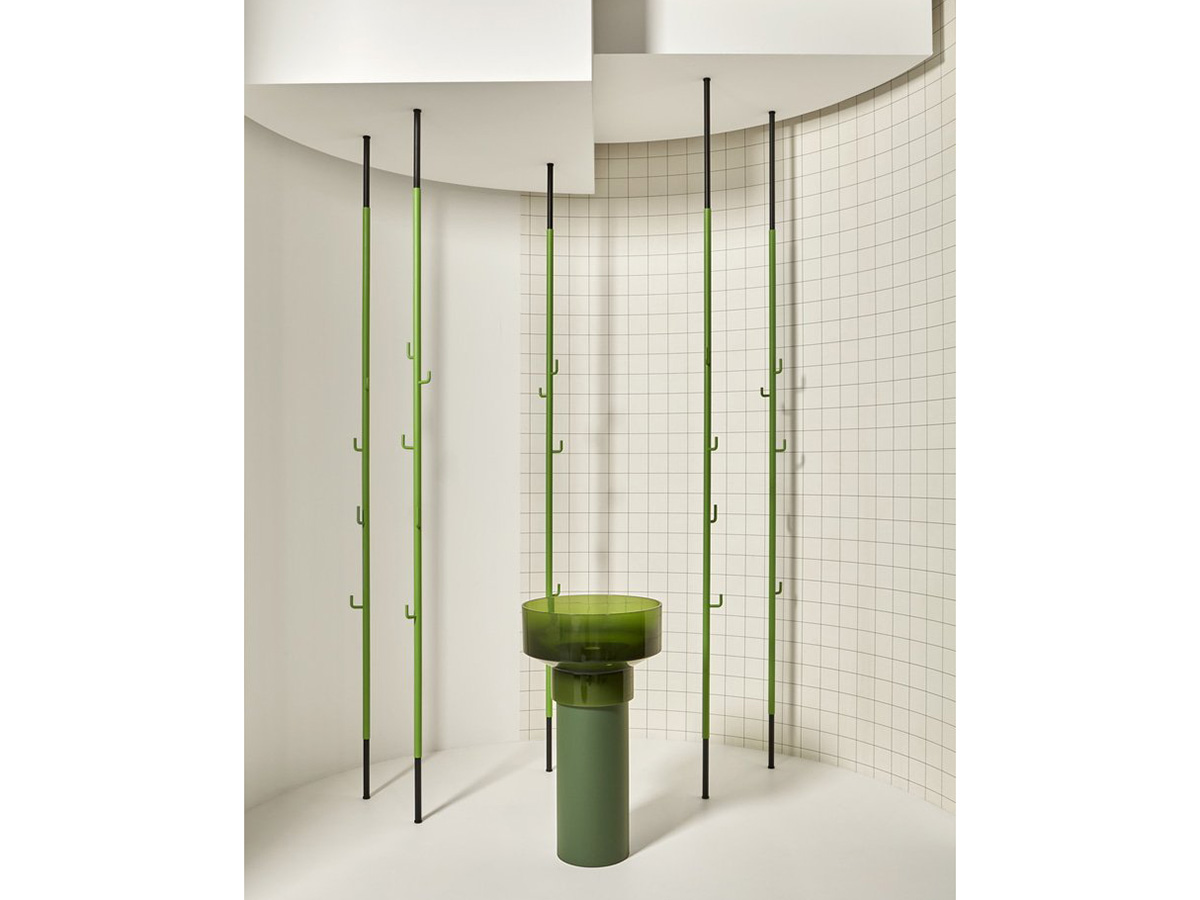 Antoniolupi's essential aesthetic meets the plant world, giving life to a bathroom furnishing element with a strong visual impact, capable of dominating the scene with its expressiveness. Cactus represents, as its name suggests, the essence of a succulent plant taken in its most symbolic and primitive form, reduced to a minimum until it is transformed into a single steel rod on which we find structural elements hanging enriched with plants and objects useful for the toilet like mirrors or small minimal trays. In its darker color Cactus manages to deceive the eye, but in the green shade its origin leaves no room for doubt, revealing itself for what it is. The work carried out by Antoniolupi is surreal and in addition to the bathroom he can very well match the taste of different rooms of the house, offering original ideas for each one.