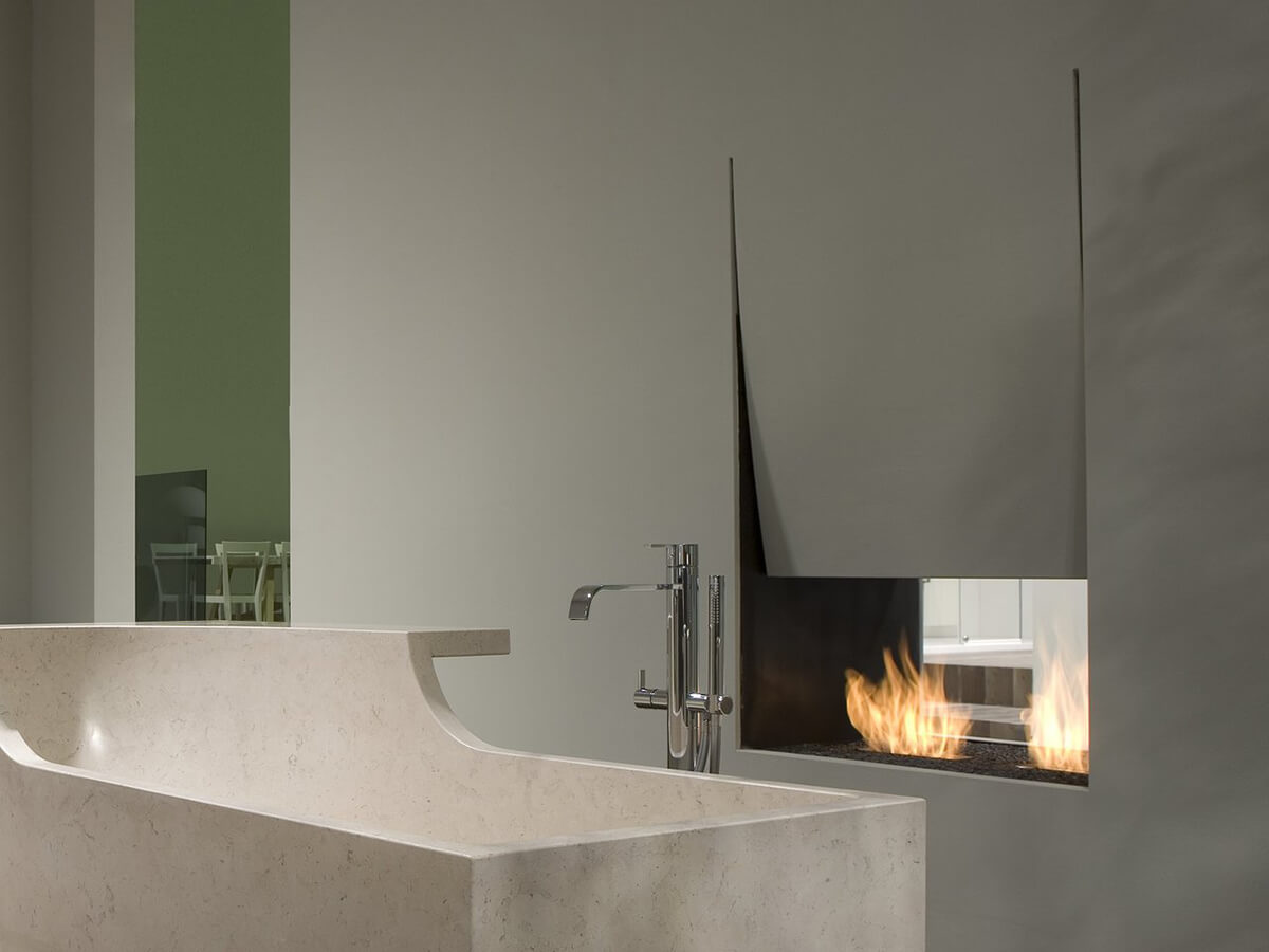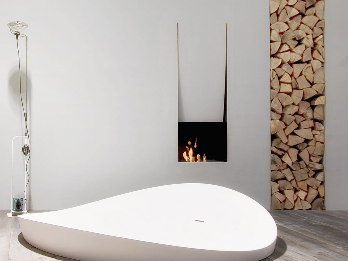 Essential and evocative shapes characterize the design of this artistic fireplace, with an original sail mouth, designed by Domenico de Palo for the well-known brand Antonio Lupi. Double-sided o single-sided, powered by wood or bioethanol, Canto del Fuoco has a steel structure that can be integrated into the wall or just leaned against it with plasterboard, corten or lacquered finishes. Available in multiple sizes, it can be easily inserted in any room of the house where it will be able to give suggestive atmospheres and warmth.