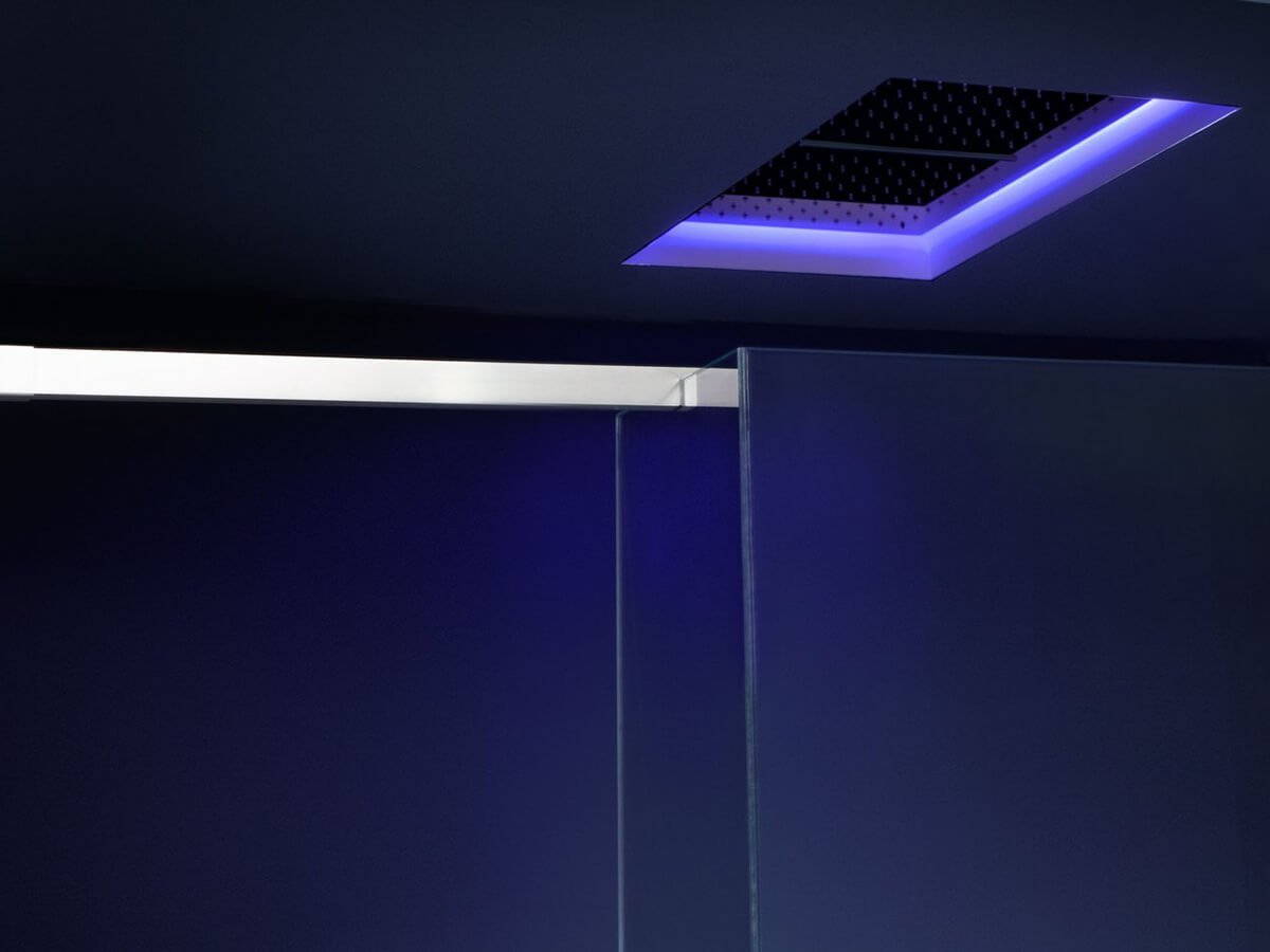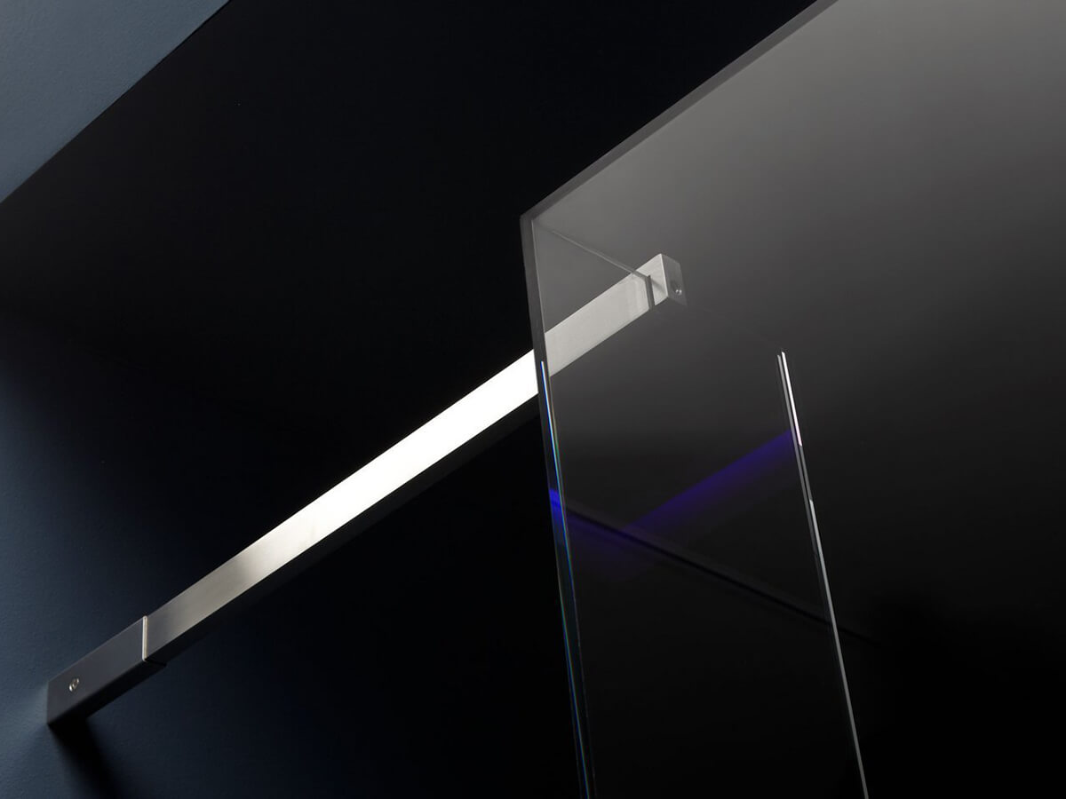 The Combi shower enclosure by Antoniolupi represents a free and innovative way to experience the bathroom environment, without a solution of continuity between the shower and the surrounding space: it is in fact without doors and has only two thin sheets of tempered glass, arranged according to a 90 ° angle to form a slight indentation that protects the surrounding environment from water splashes. A brushed stainless steel spacer and a third protective glass plate can be added to these, composing showers suitable for environments of different sizes and shapes.* Technical features: the glass of the Combi shower is available in different finishes: extra-clear, etched, smoked, bronze and reflective smoked