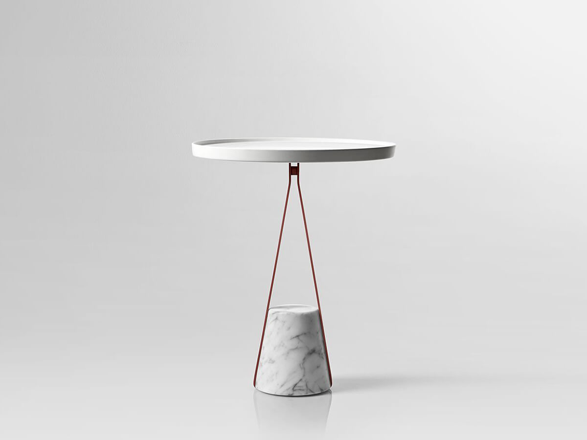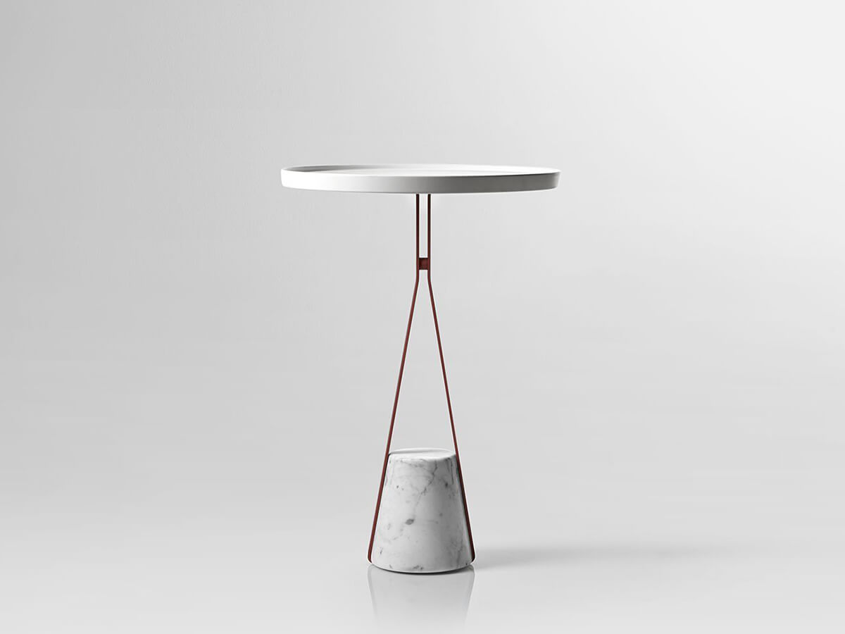 *Price valid for the side table version in H.48 cm with top in ø 24 cm in white Flumood finishing - base in satin Carrara marble with frame in matt white varnished brass (cod. HALO1A).