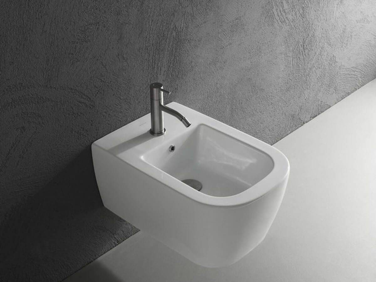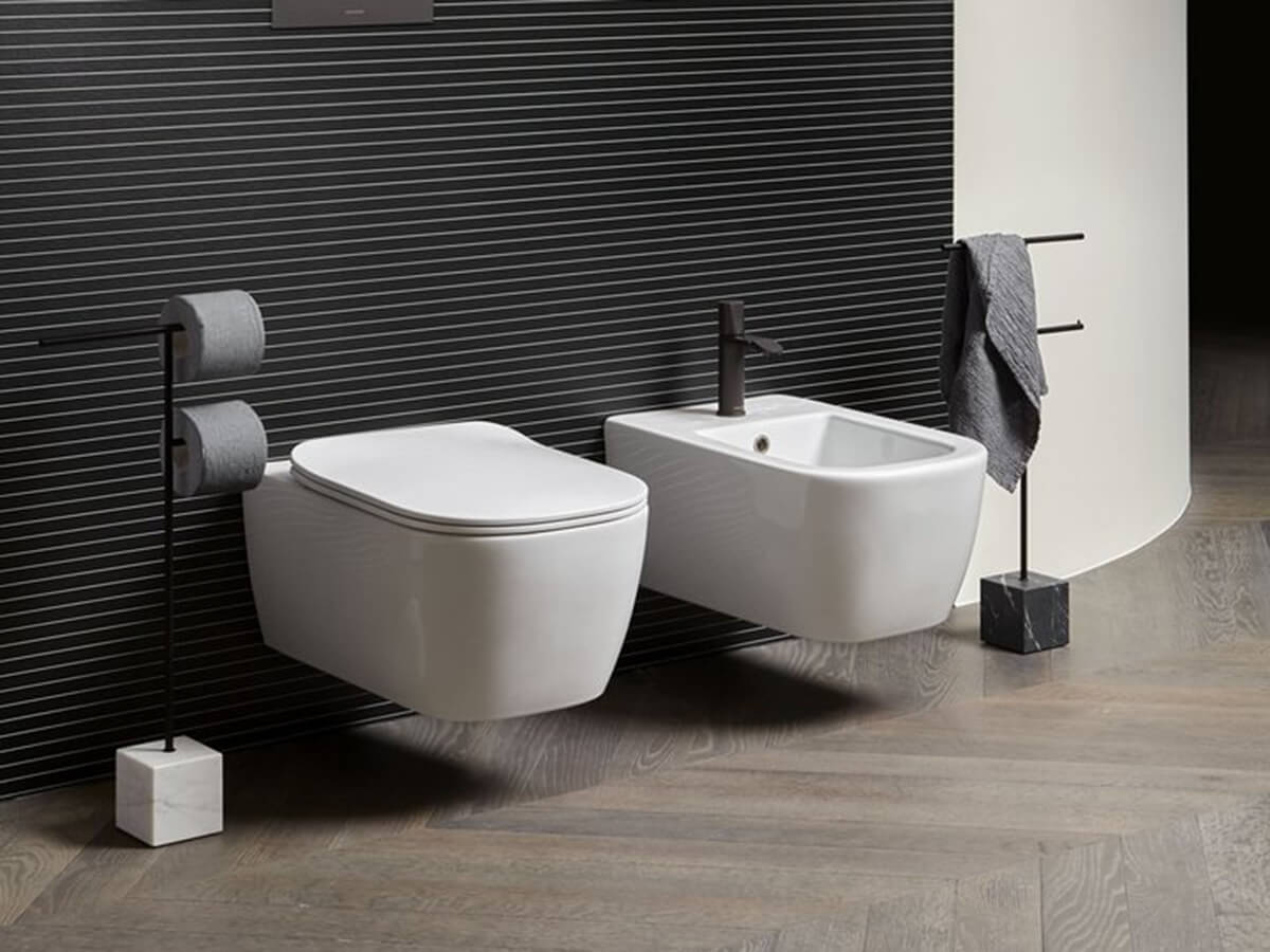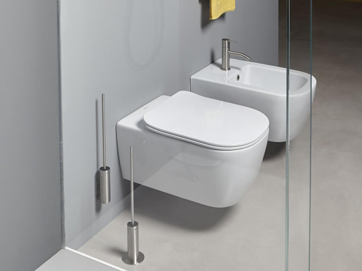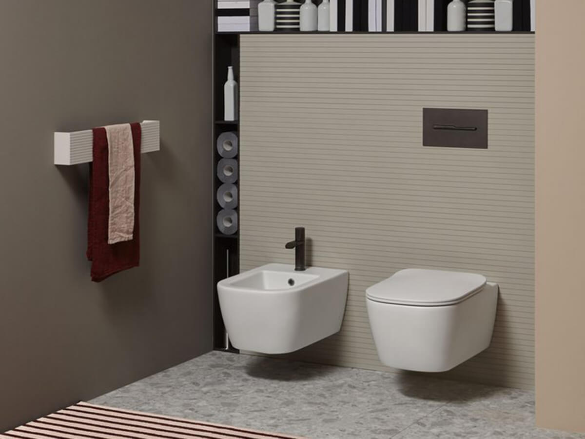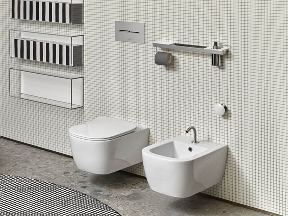 The Komodo design sanitaryware line by Antoniolupi features essential lines and solid geometries, in which straight lines and curved surfaces blend harmoniously to create a balanced and graceful collection. The simplicity of the shapes allows Komodo to easily integrate into bathroom environments with the most diverse tastes, infusing even its simplest elements such as toilet and bidet with that elegance that only a wise and thoughtful design can instill. The collection consists of two elements, a suspended toilet, complete with an enveloping seat and a single-hole suspended bidet. Both are available in both glossy lacquered and satin ceramic and feature a wall drain