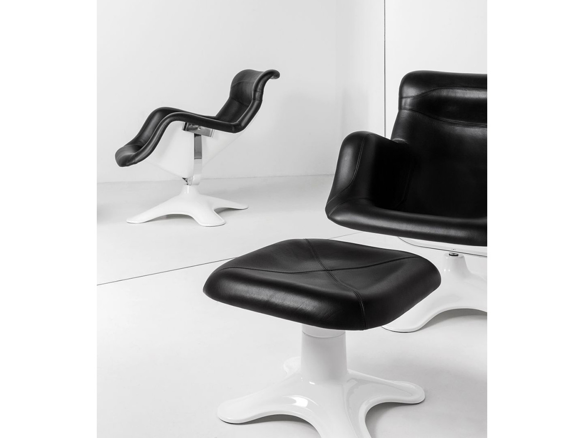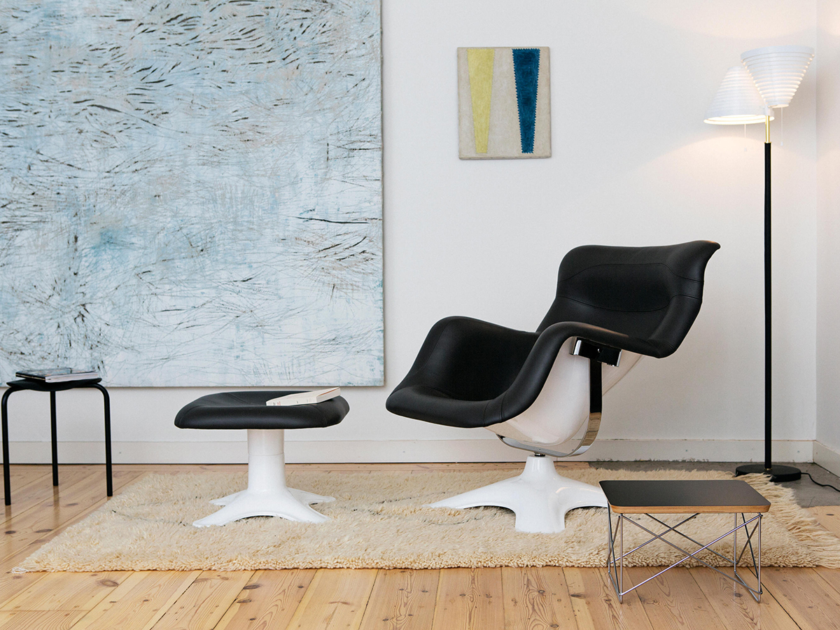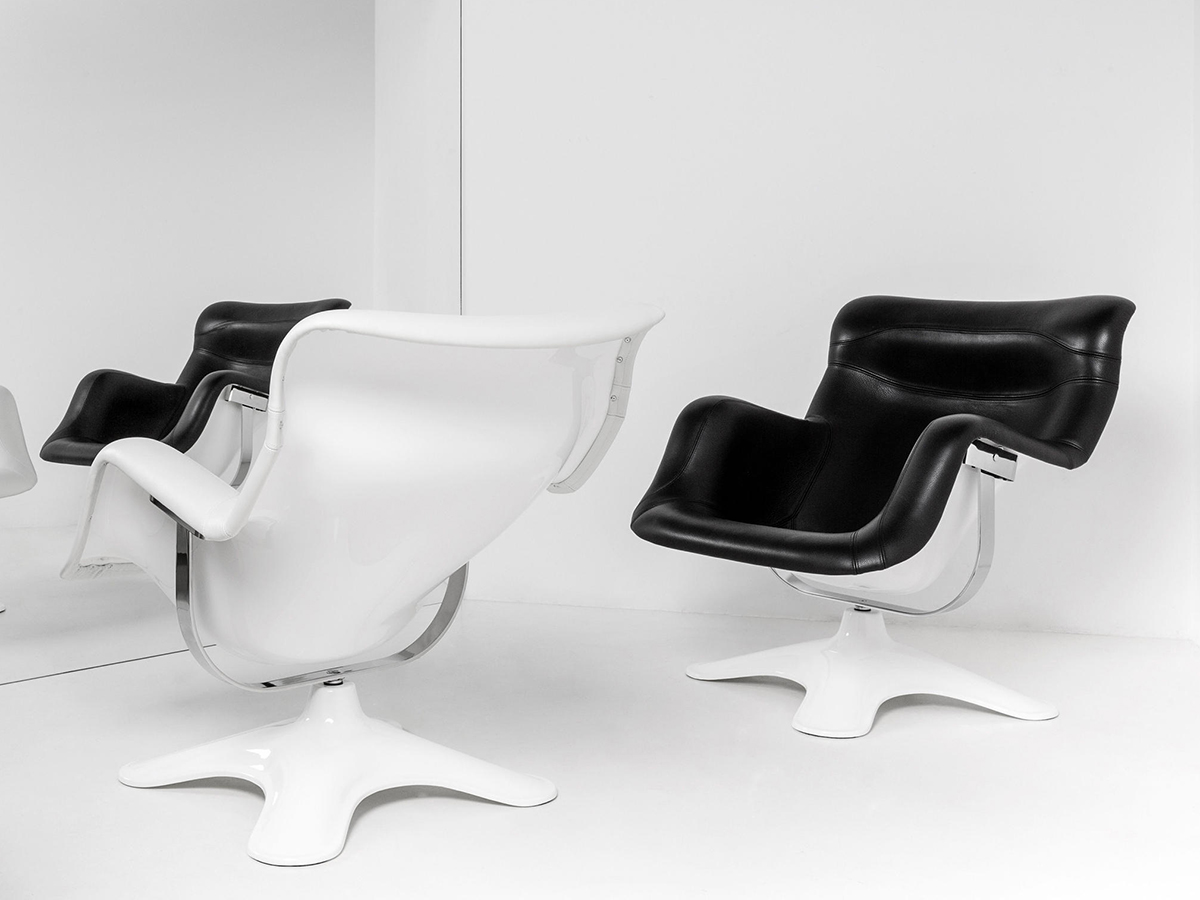The Karuselli armchair by Yrjo Kukkapuro, now revived by Artek, is probably the most famous product of Finnish design of the 60s, a period in which the strong naturalistic vocation typical of the Scandinavian school was being contaminated with futuristic visions in the Space Age style and with the use of new materials such as fiberglass, used in the Karuselli armchair for the base and shell. If the materials were new, the in-depth research into ergonomics however remained a constant of the Scandinavian style and was brought by Kukkapuro almost to a paroxysm: his research on this model already began in the 1950s, culminating in their definitive form only in 1964, after several years of work. Immediately highly acclaimed internationally, it was defined by Terence Conran (immortal noble father of English design) as "the most comfortable armchair that has ever been built".