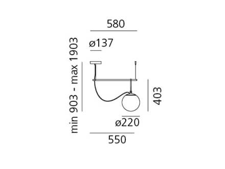 *Price valid for the version NH S1 14 with shade in ø 14 in white glass, body in brushed brass and frame in W.58 cm in black colour – bulb excluded (cod. 1272010A).