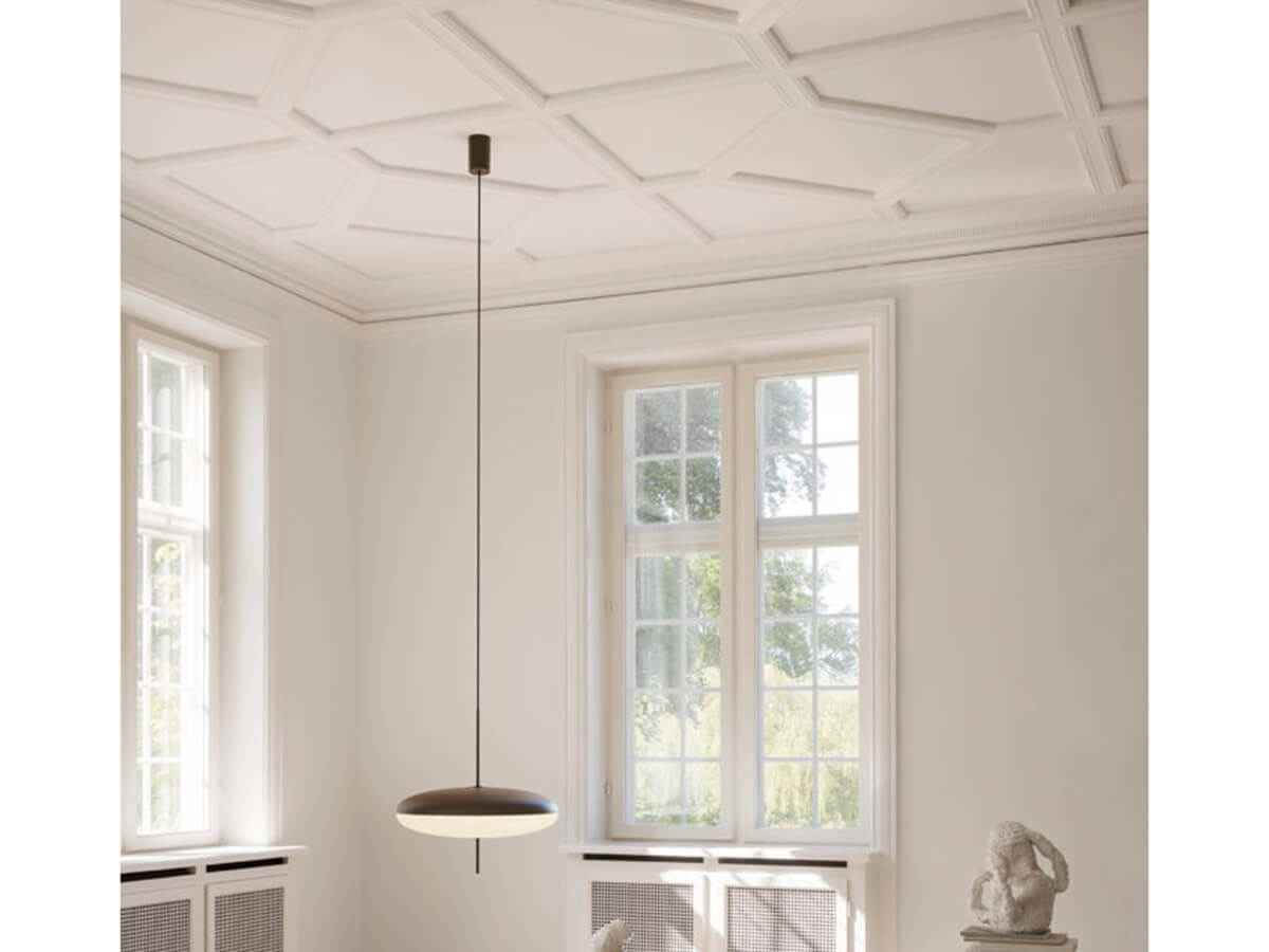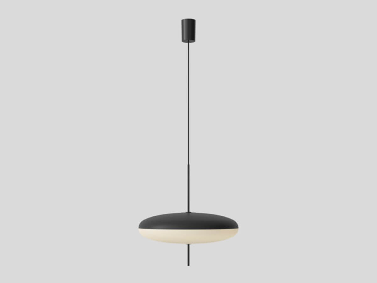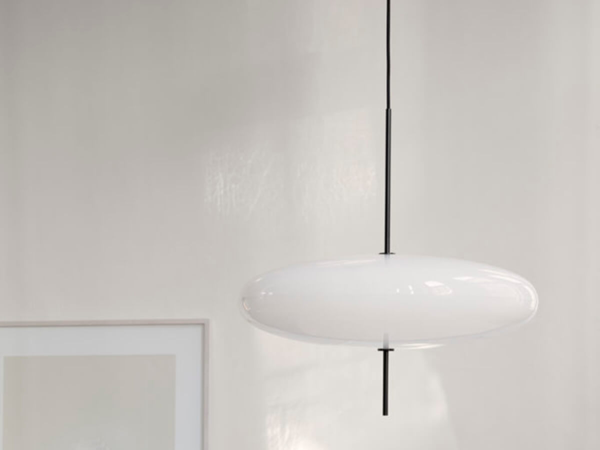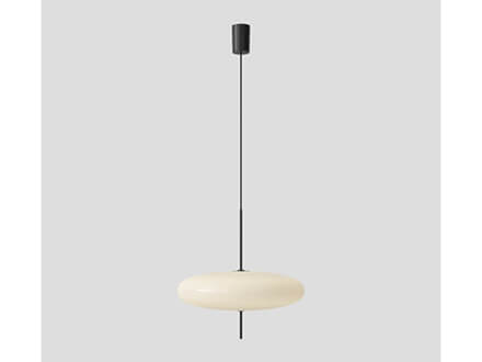 Among the numerous proposals by Astep for lighting furnishings, the suspension lamp 2065 stands out for its formal purity combined with an essentiality that makes it difficult to replicate but above all, easily distinguishable in the crowd. Gino Sarfatti had designed the lighting body in glass, but today that component has been replaced with methacrylate, a much stronger and lighter polymeric plastic. The diffuser has two opalescent plates joined together and suspended from the ceiling with a black painted aluminum rosette. An example of unparalleled elegance and lightness.