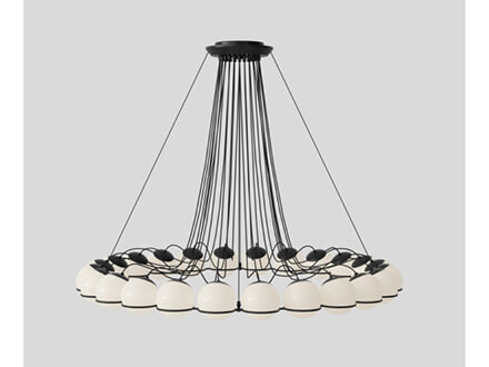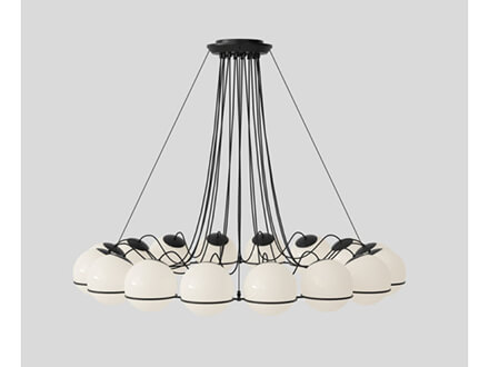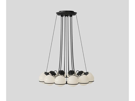 *Price valid for the version with n.12 shades in Ø 14 cm in opal glass - black frame - bulb included (cod. T08-S31-SCB0).