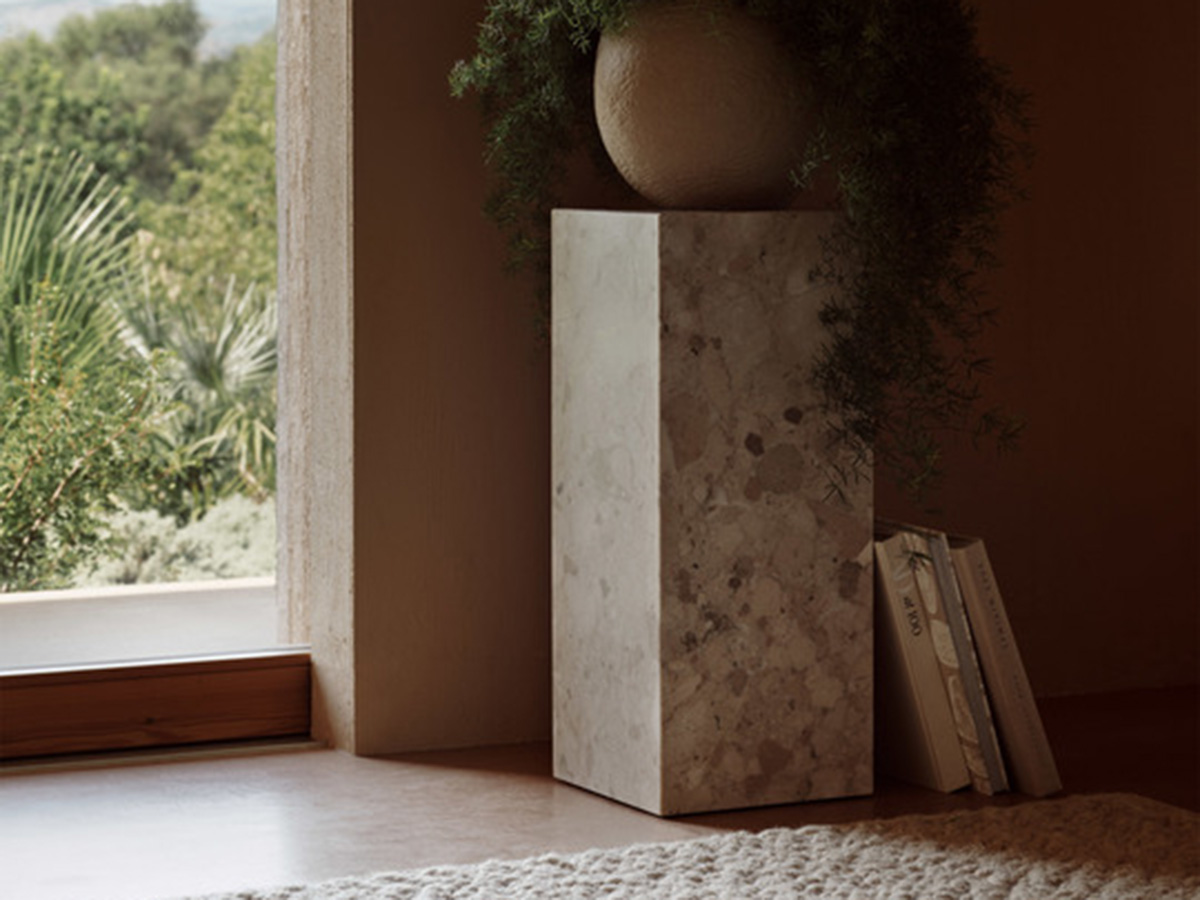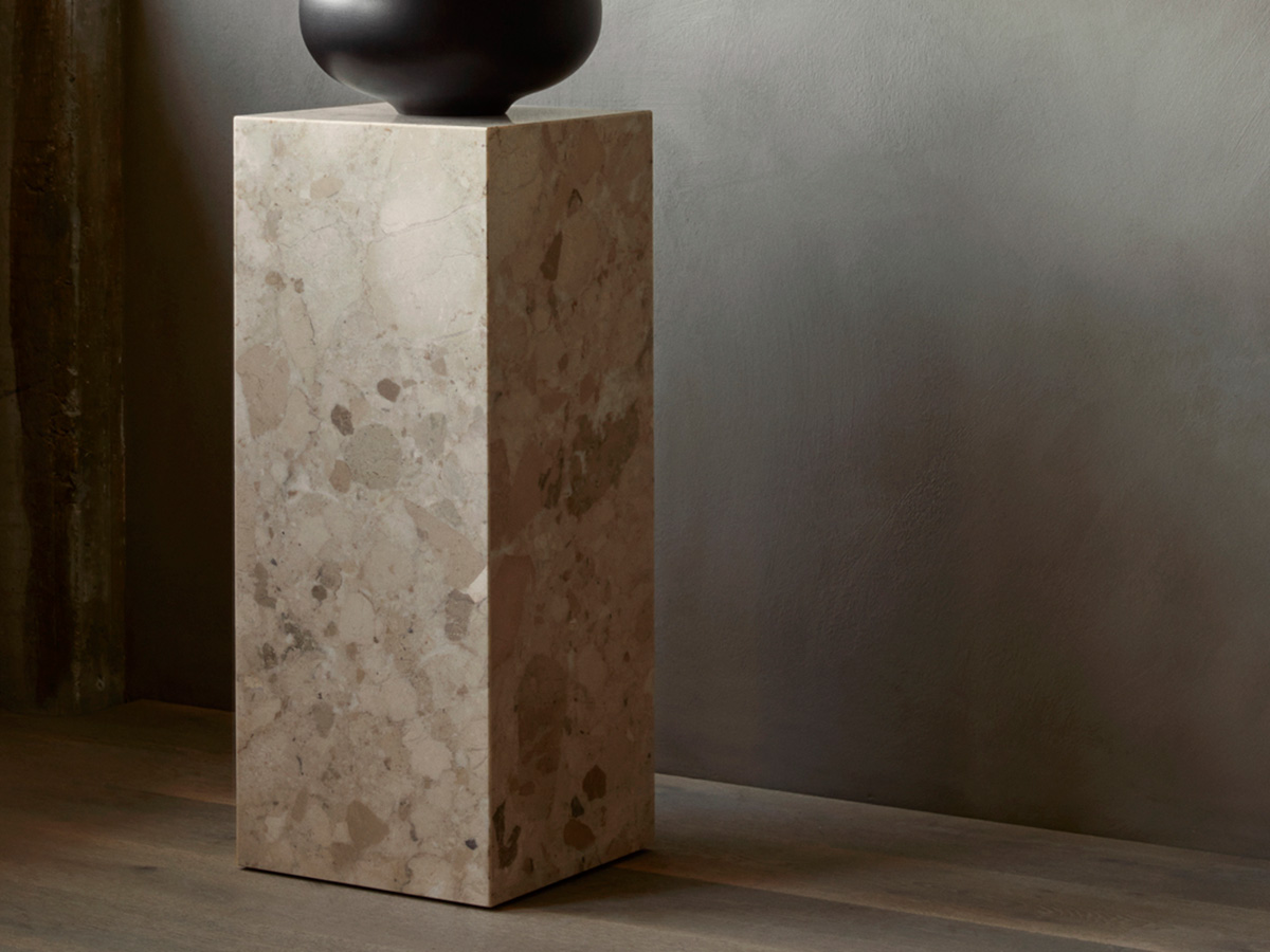 A piece of furniture from ancient tiems, which seems to combine solidity with the perfection of shapes, as well as the aesthetics that are often associated with the noblest of materials, marble. Plinth is a versatile table that can be used both as a support and as a replacement for a bedside table, therefore ideal in living rooms and living areas but also in sleeping areas of bedrooms and bedrooms. Its linearity places it very well even in more formal contexts such as waiting rooms and contract environments. The surface of Plinth stands out for its harmonious smoothness dotted with the natural ripples of the marble which by definition make each piece unique and impossible to replicate. Available in numerous marble variations or in Kunis Breccia Stone.