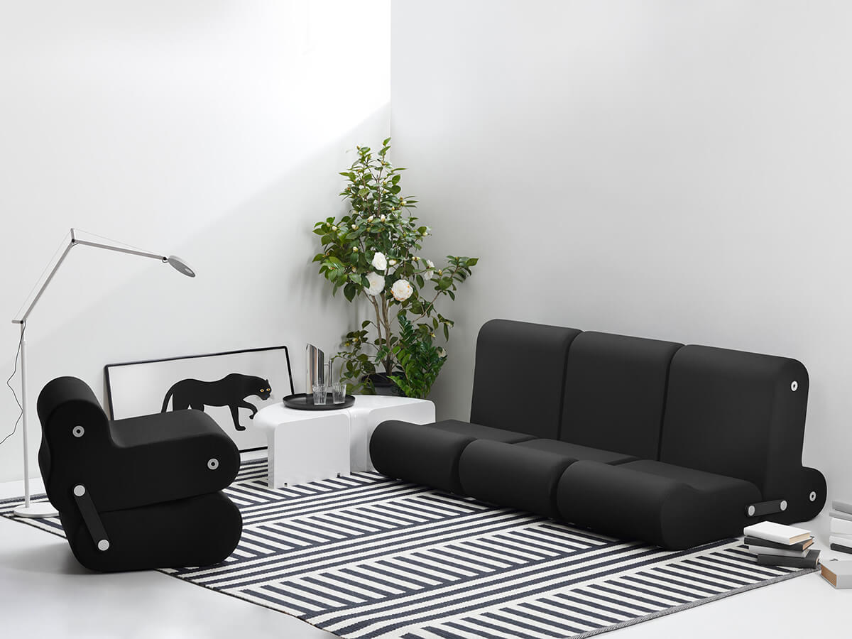 A one-of-a-kind modular system, capable of giving elegance and beauty but also a certain dose of playfulness to the seats designed by B-Line. Multichair is made up of two distinct elements that can transform the entire seat into a chair or armchair depending on the need. The cushions have an internal steel structure and are padded with polyurethane foam. The elasticized fabric of the covering is glued to better resist the wear and tear of time and supported by straps, pins and bushings to guarantee perfect performance for a long time. A wide range of colors contributes to giving this furnishing element a unique and perfectly distinguishable personality.